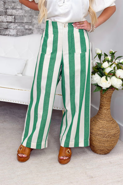 Green Striped Wide Leg Pant