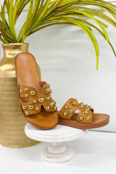 Antelope Alex Taupe and Gold Stud Leather Sandal