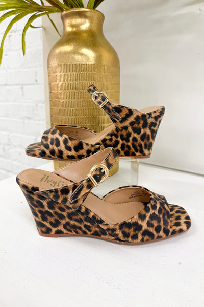 XOXO Leopard Patent Buckle Wedge
