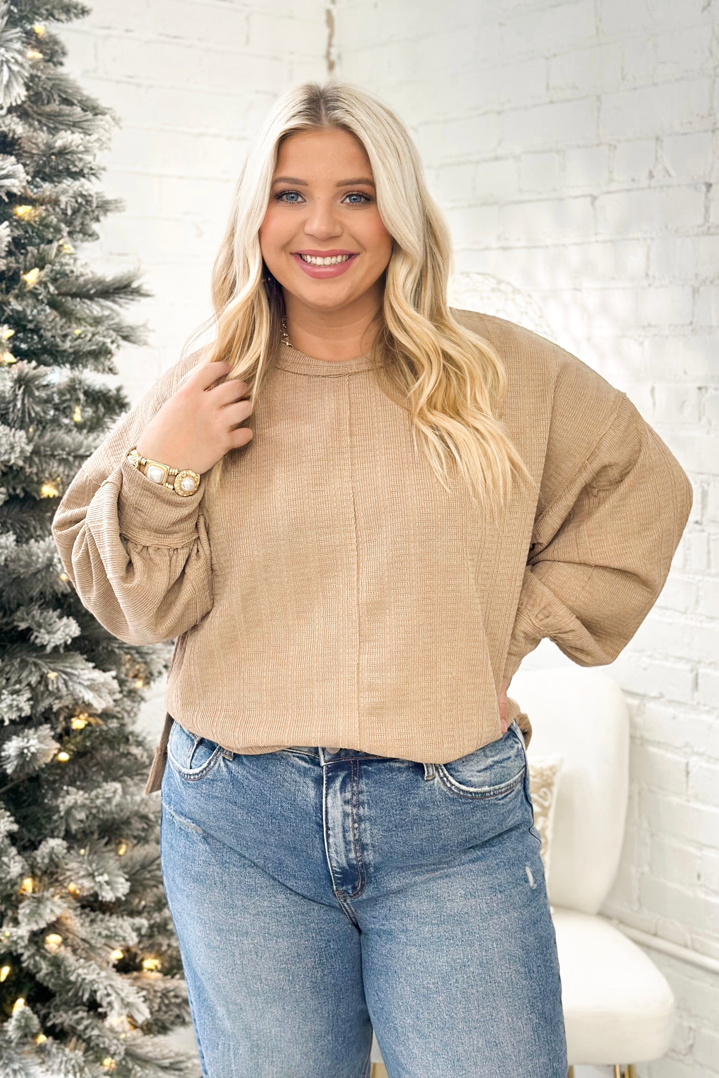 Mallory is 5’5 wearing a size 1X. Fits TTS. Mallory normally wears a Large/XL.