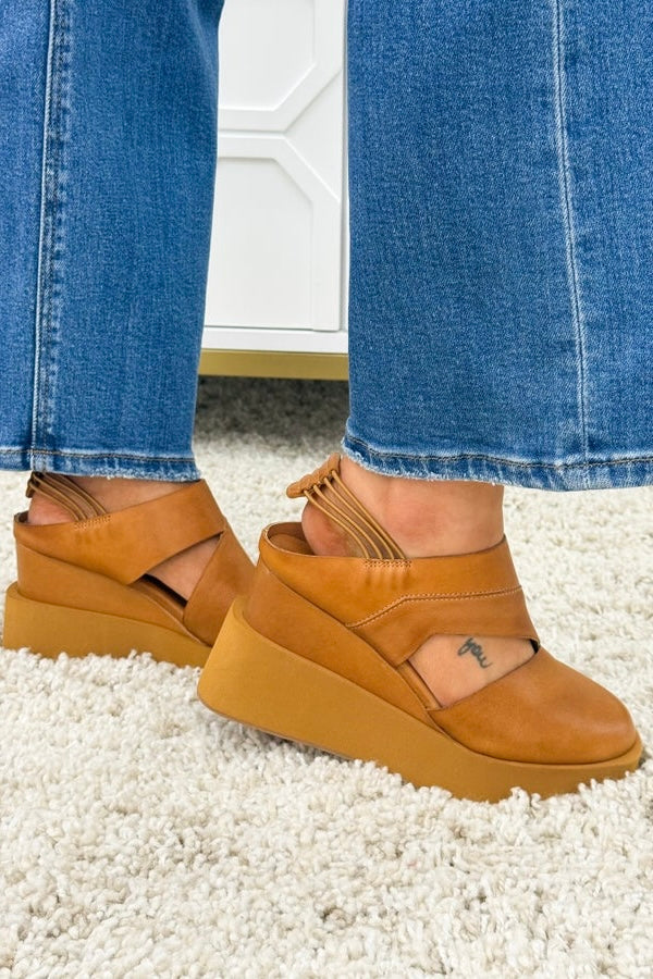 Comfortable platform sole provides stable height without sacrificing comfort.