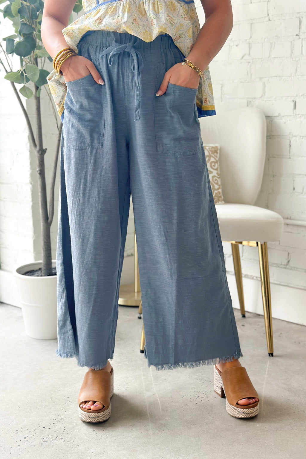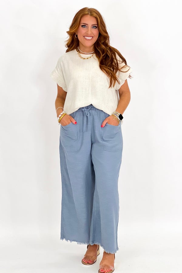 Bluish Cyan Mid Rise Distressed Crop Pants