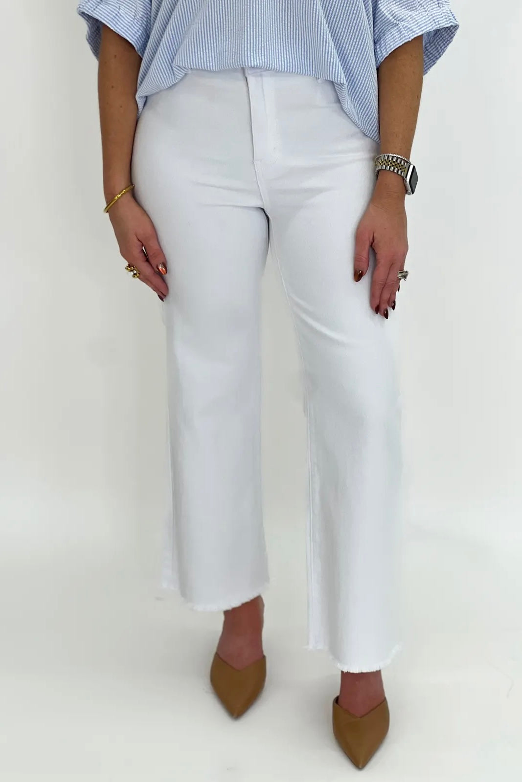 White Acid Washed Wide Leg Pant