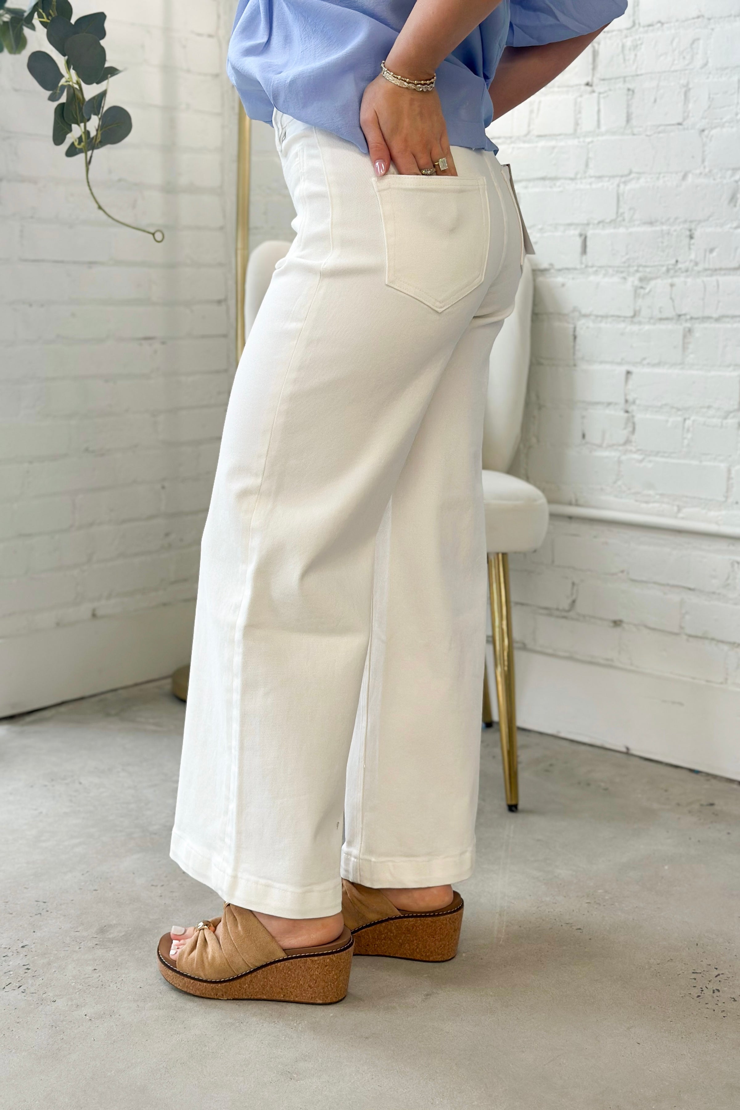 Warm White High Rise Ankle Wide Leg Jean