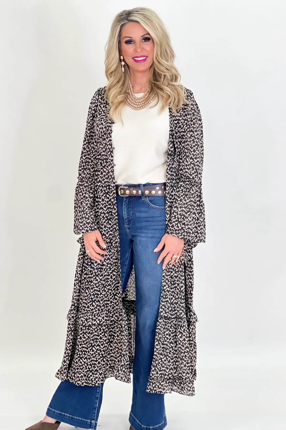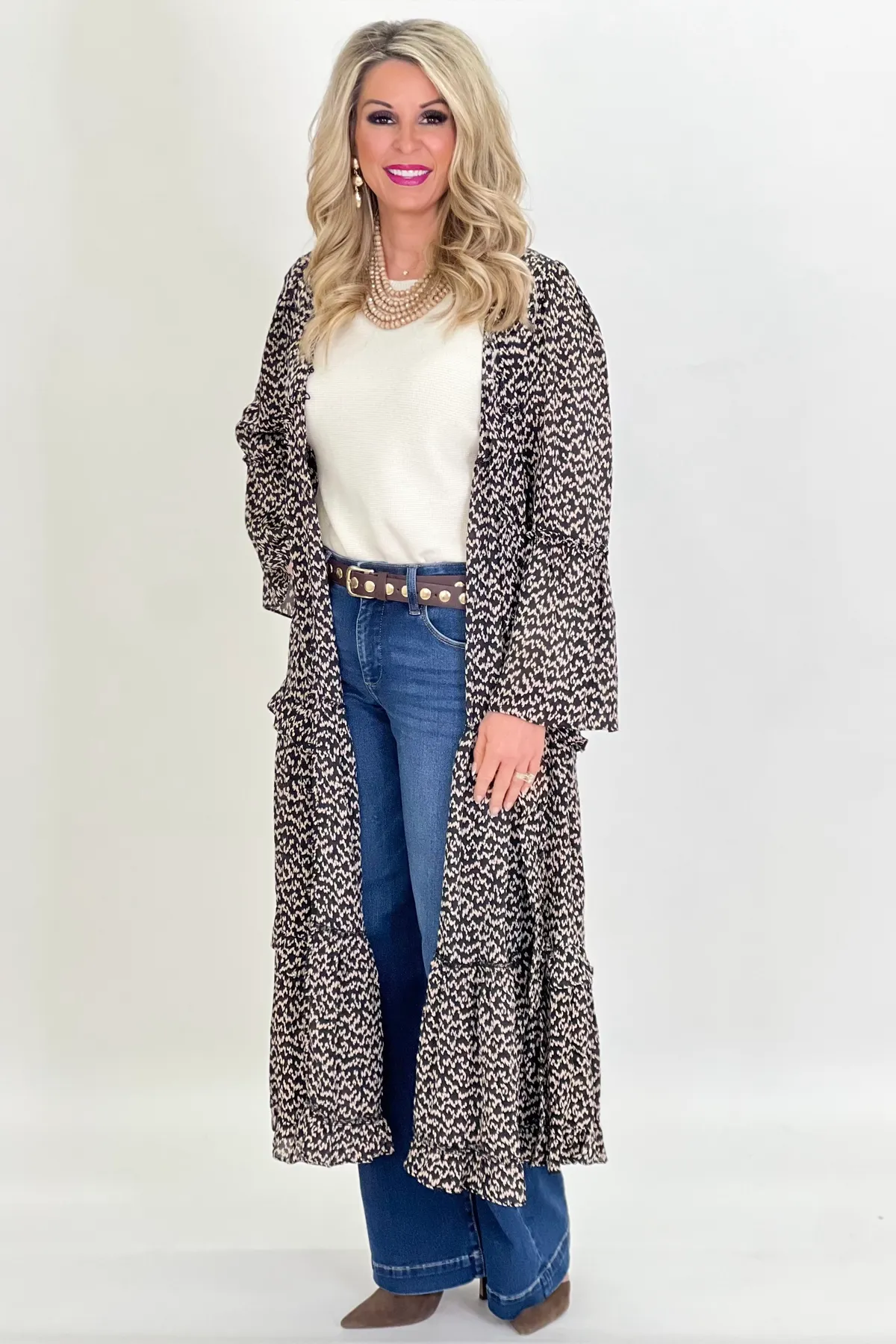Black Printed Duster Cardigan