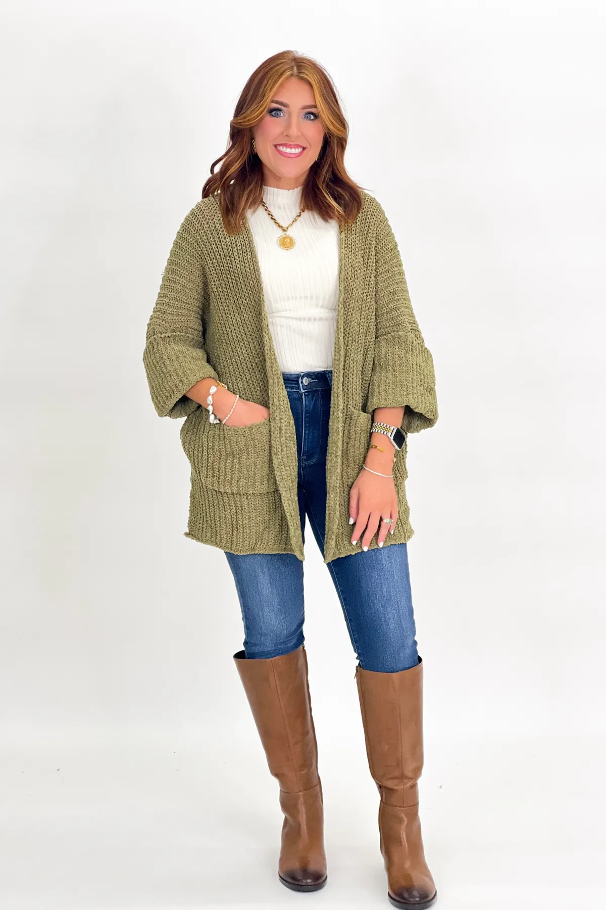 Sarah is 5'2 wearing a size small. (4/6)Runs big.