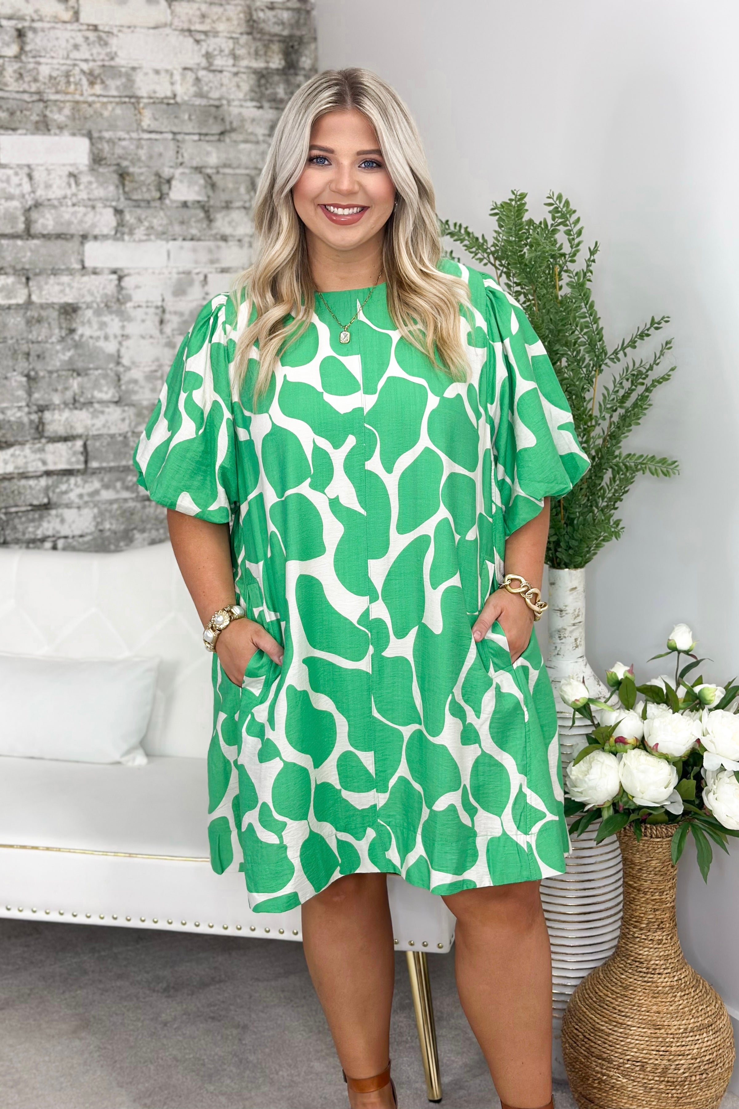 Island Green Two Tone Abstract Print Dress
