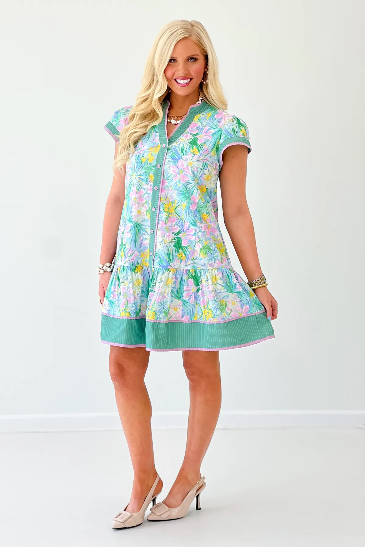 Mint Blue Floral Button Up Dress