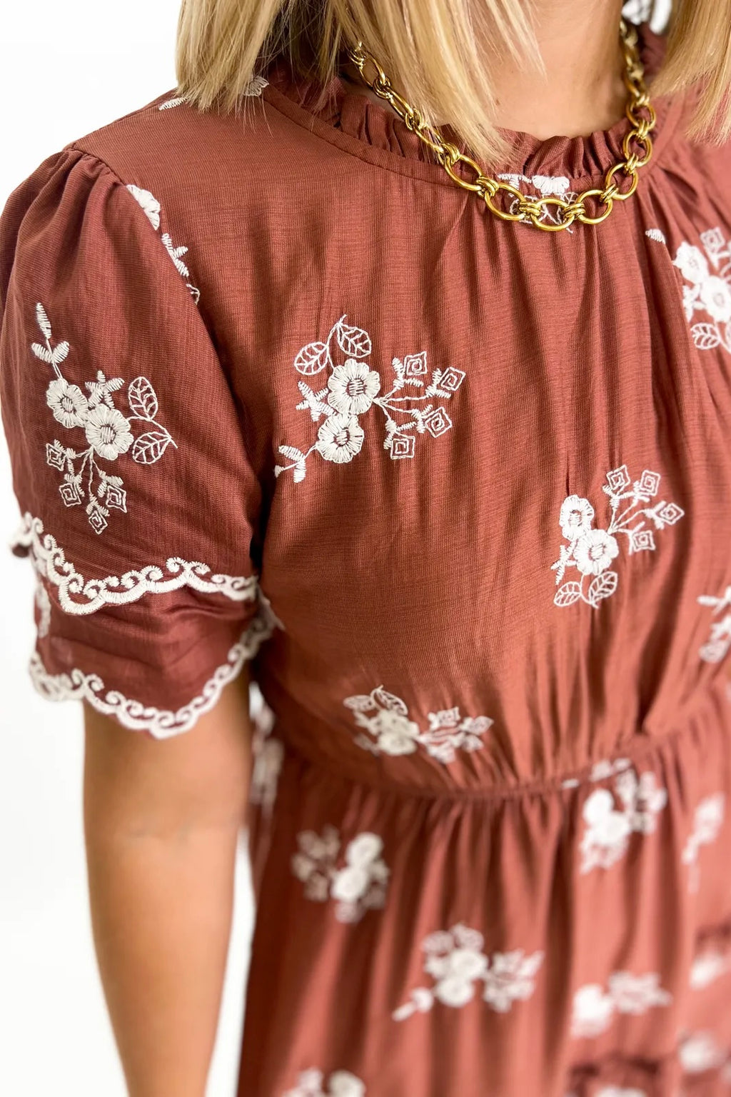 Blue Eyelet Floral Printed Short Sleeve Dress *Final Sale*