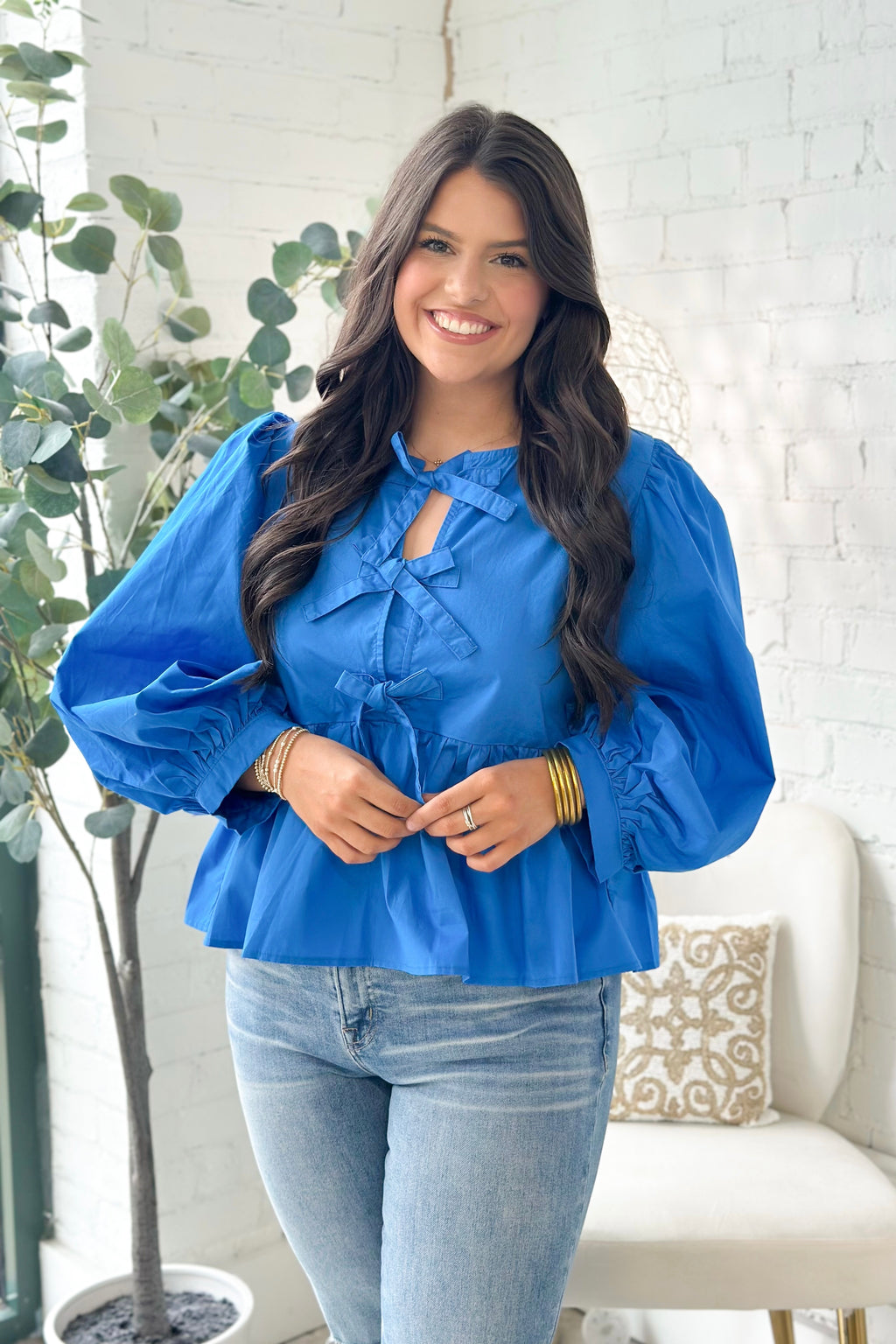 Cobalt Blue Bow Tie Front Half Sleeve Top