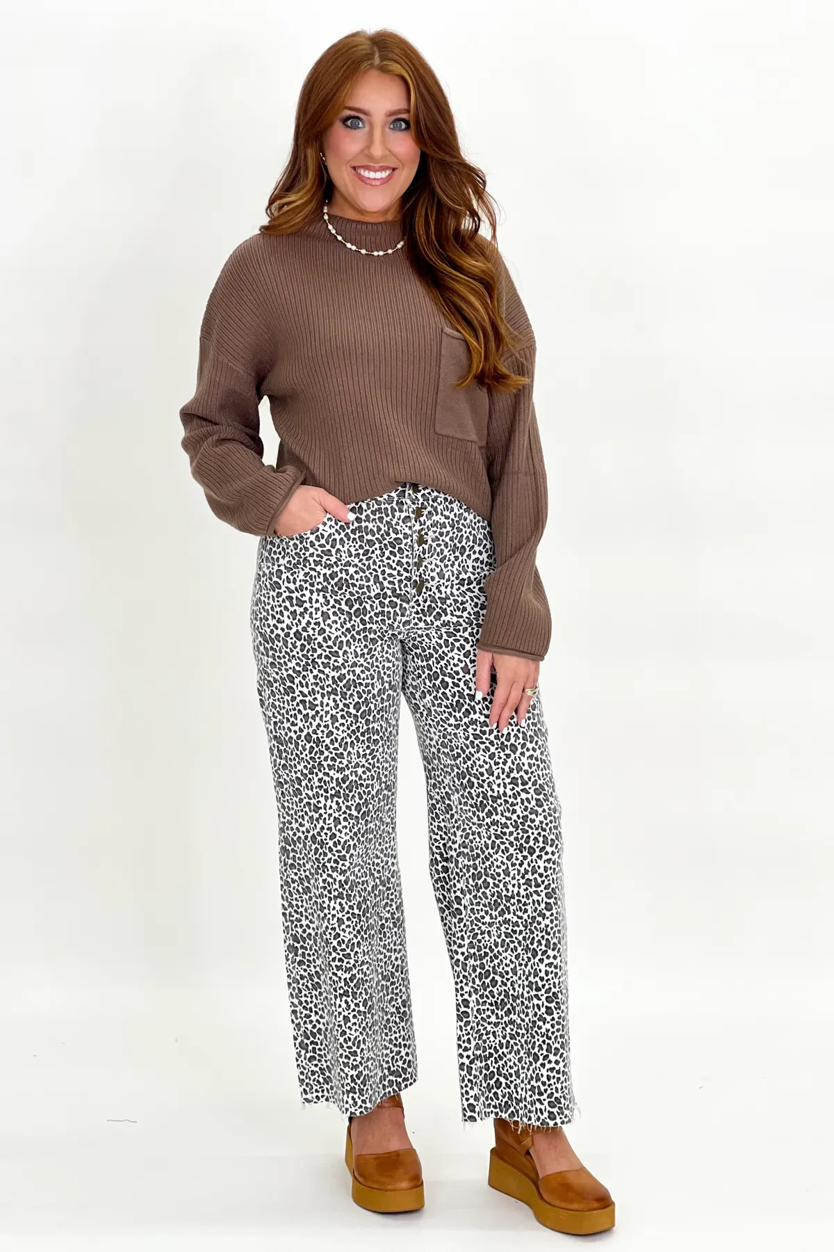 Mocha High Neck Pocket Sweater Top
