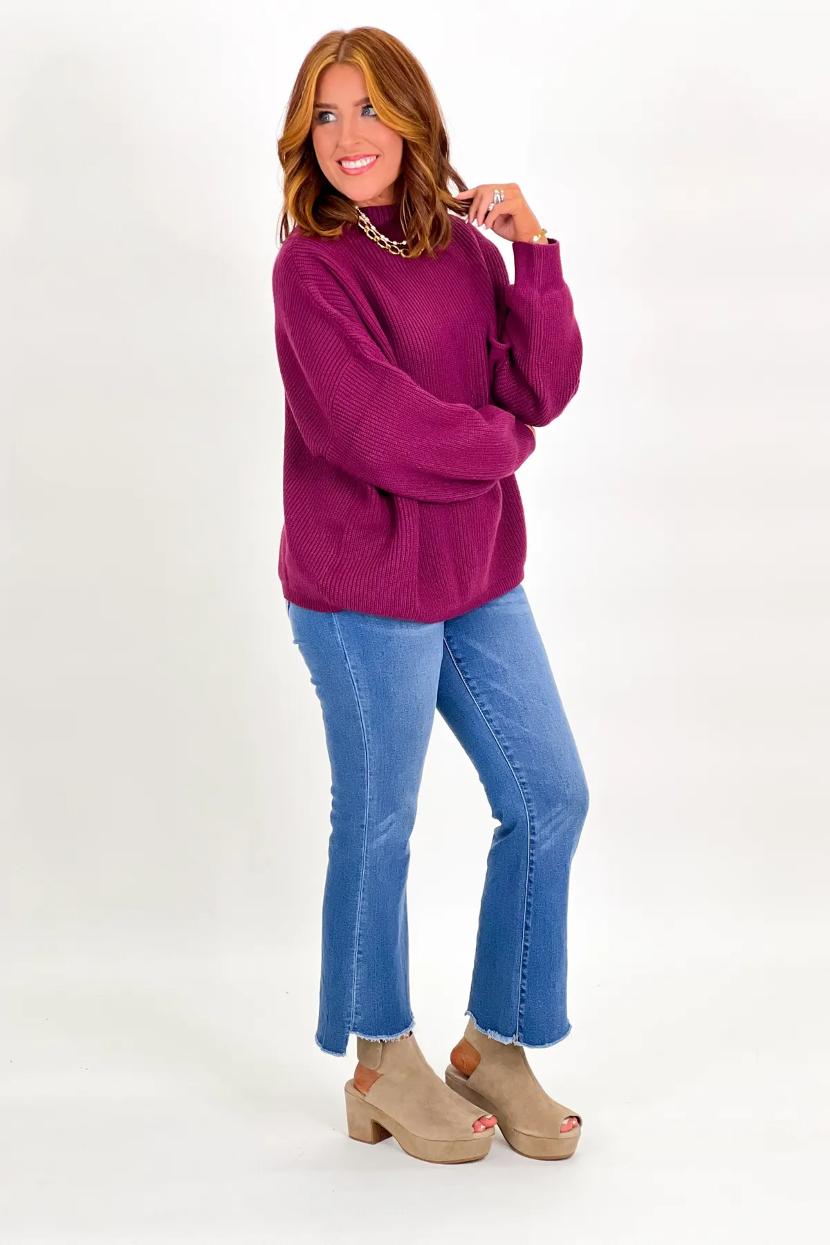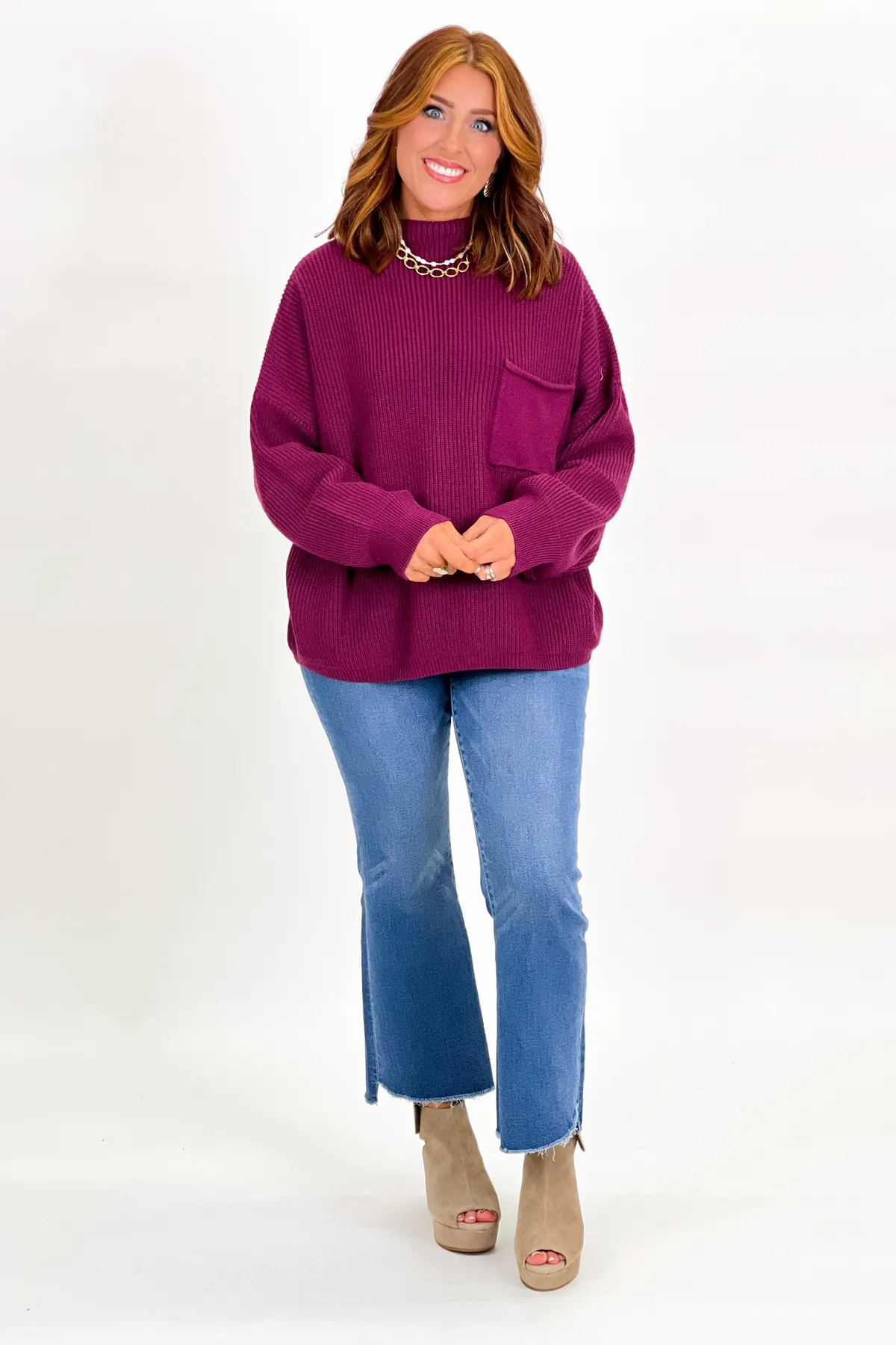 Plum Long Sleeve Front Pocket Sweater Top