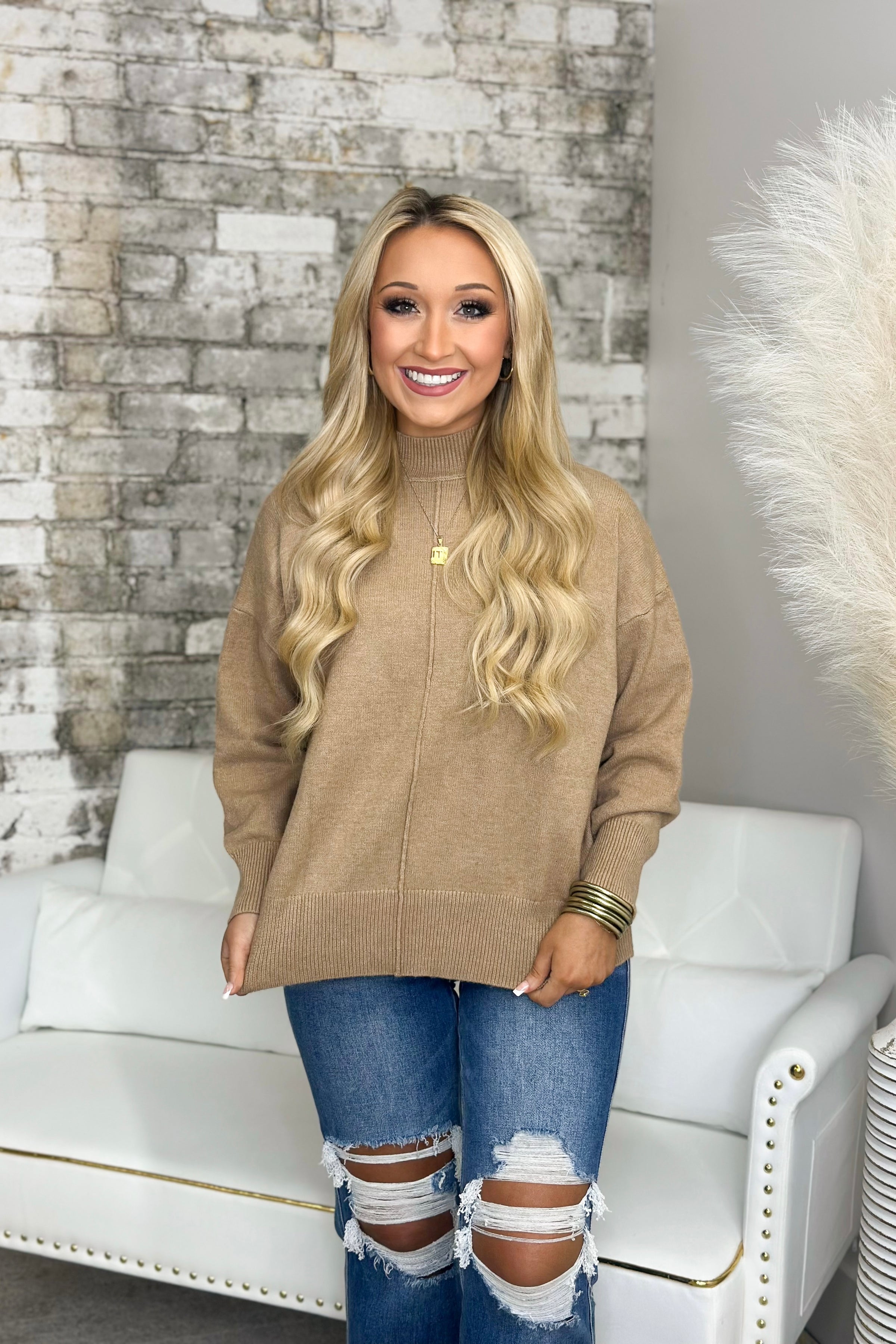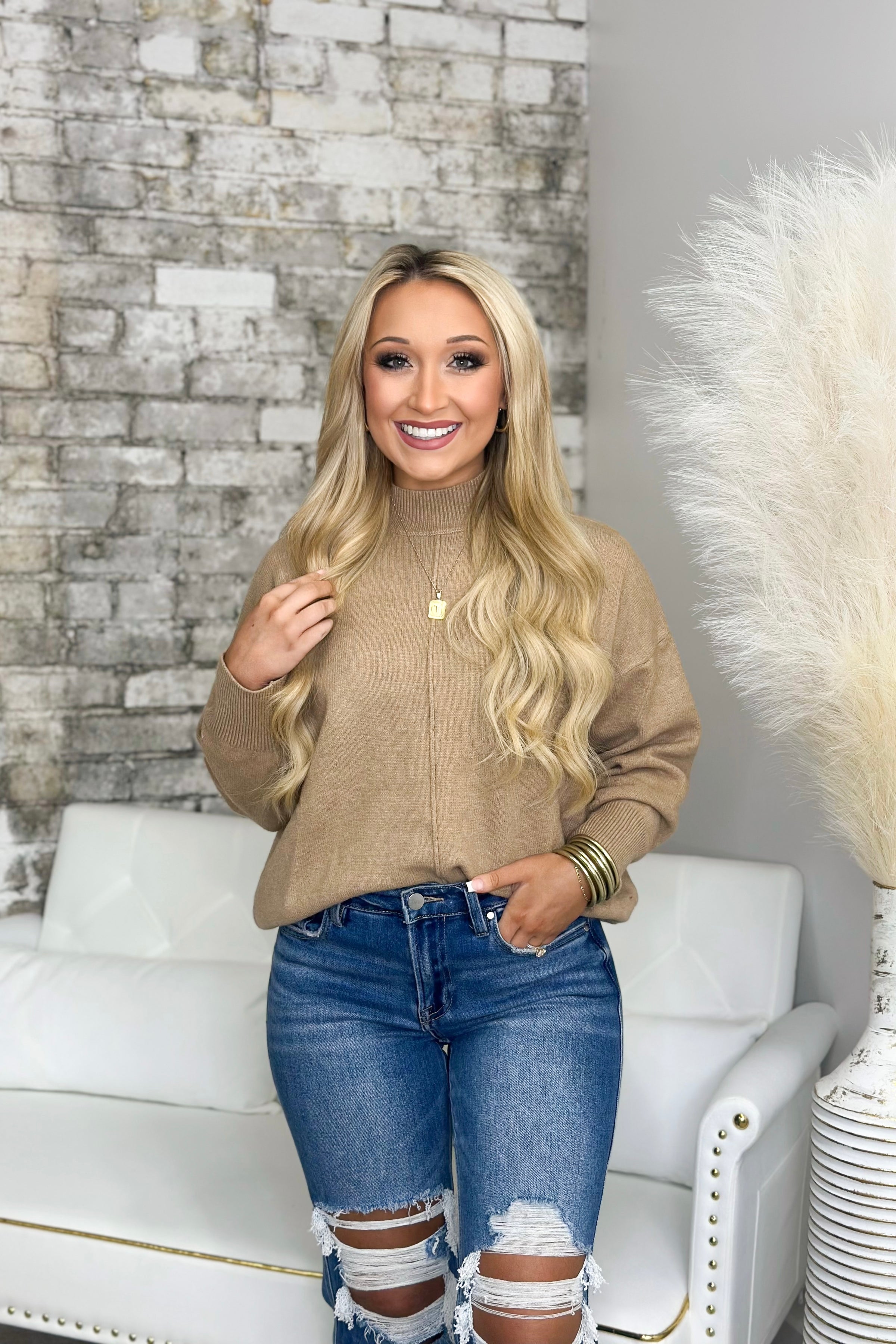 Taupe Front Seam Mock Neck Long Sleeve Sweater *Final Sale*