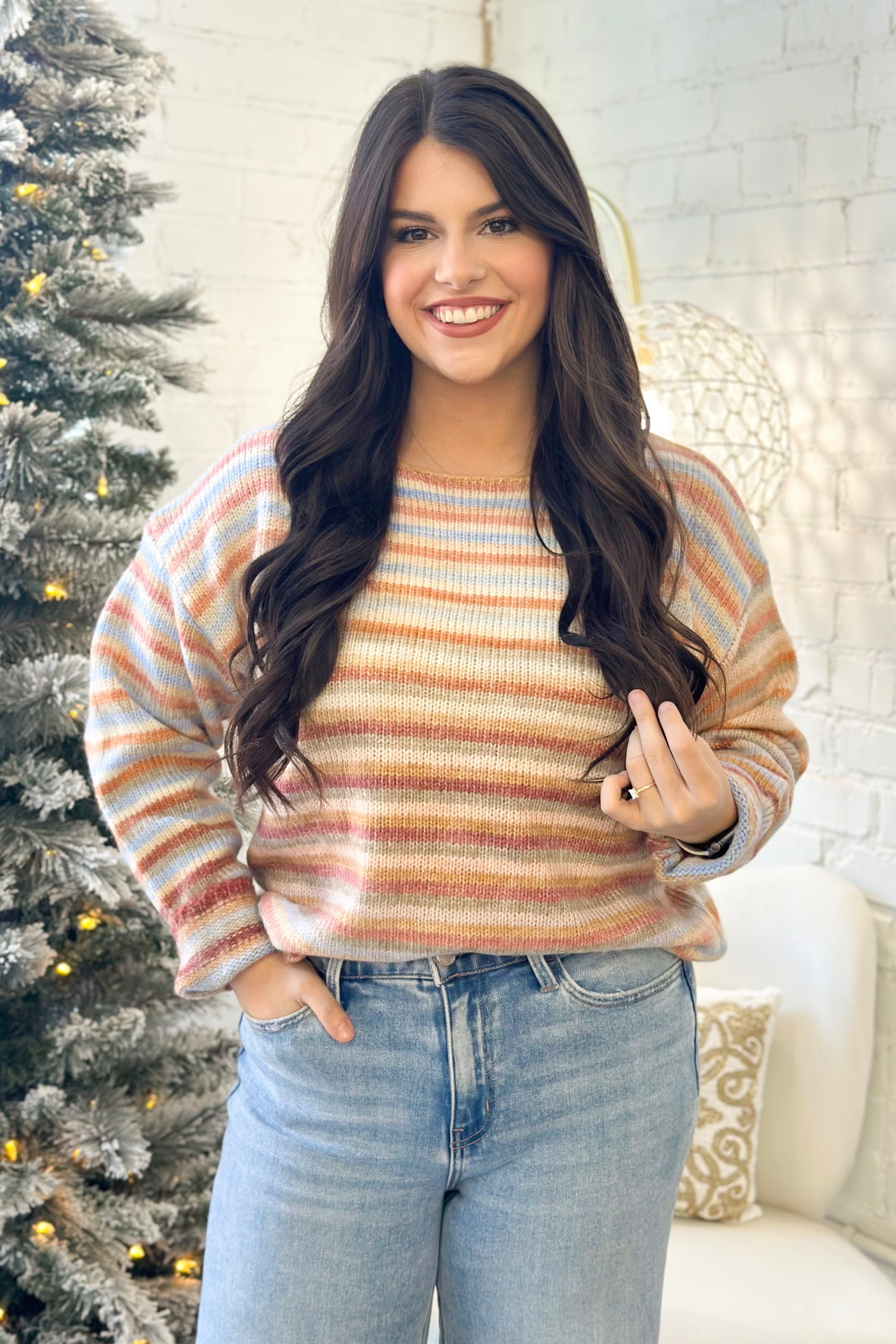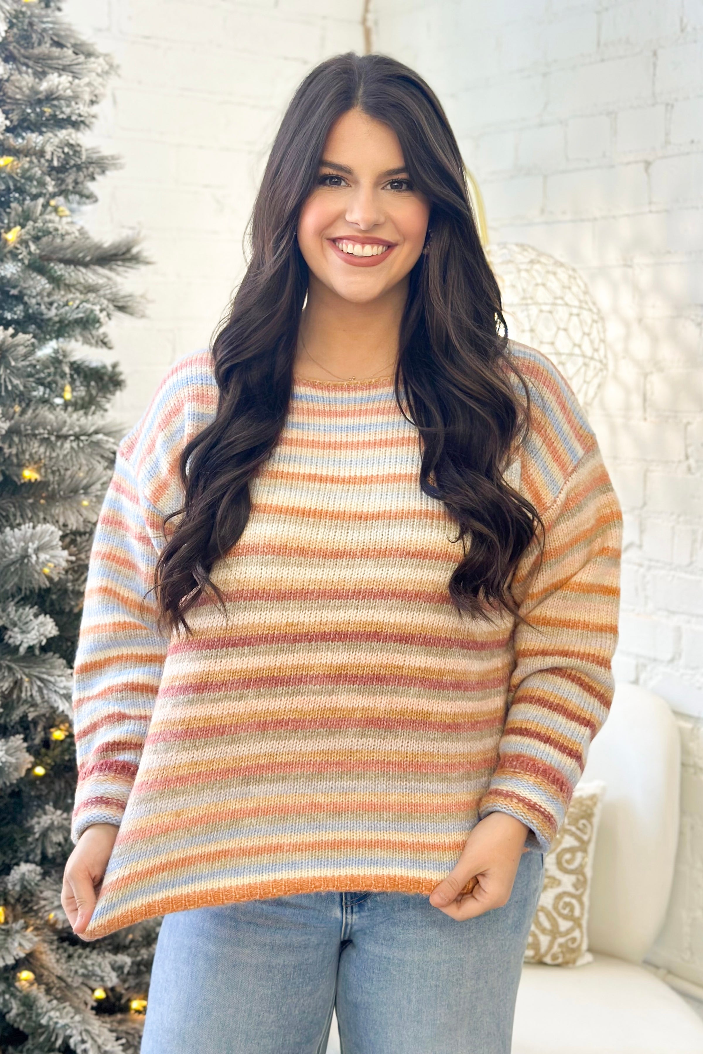Peach and Sage Long Sleeve Knitted Sweater Top
