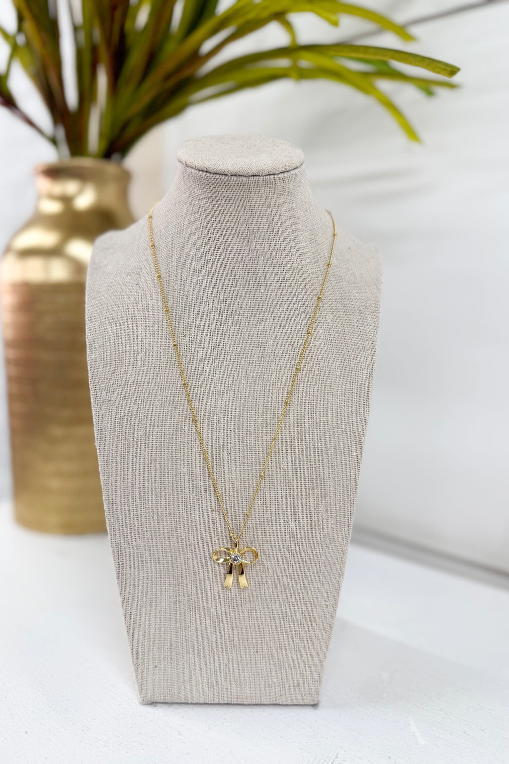 Krista Bow Pendant Nck Gold White MIx