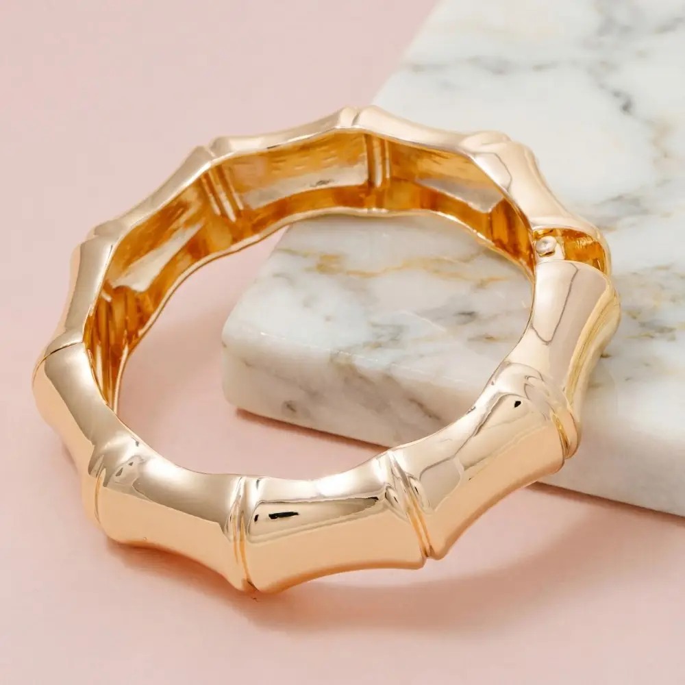 Hinged metal bangle bracelet featuring a bamboo-textured design.