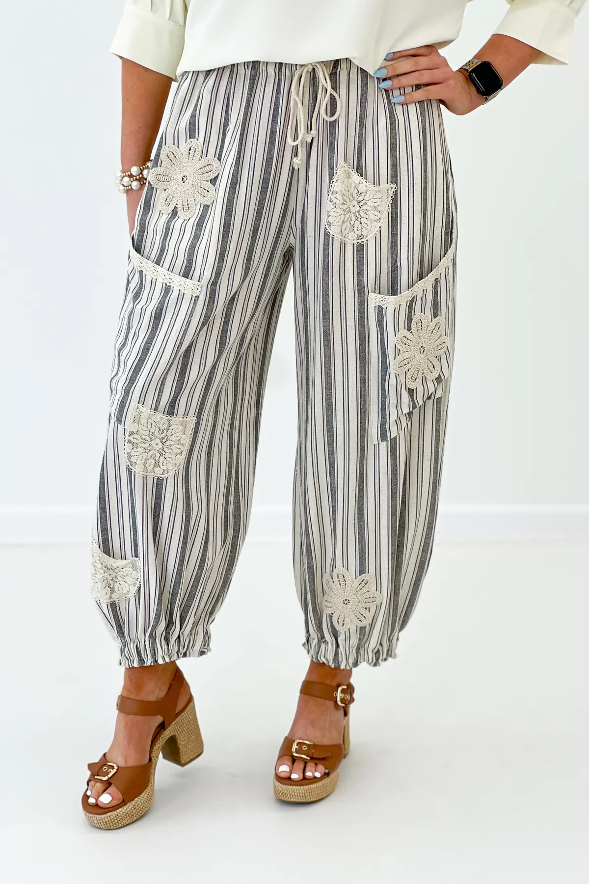 Charcoal Striped Woven Patched Pant