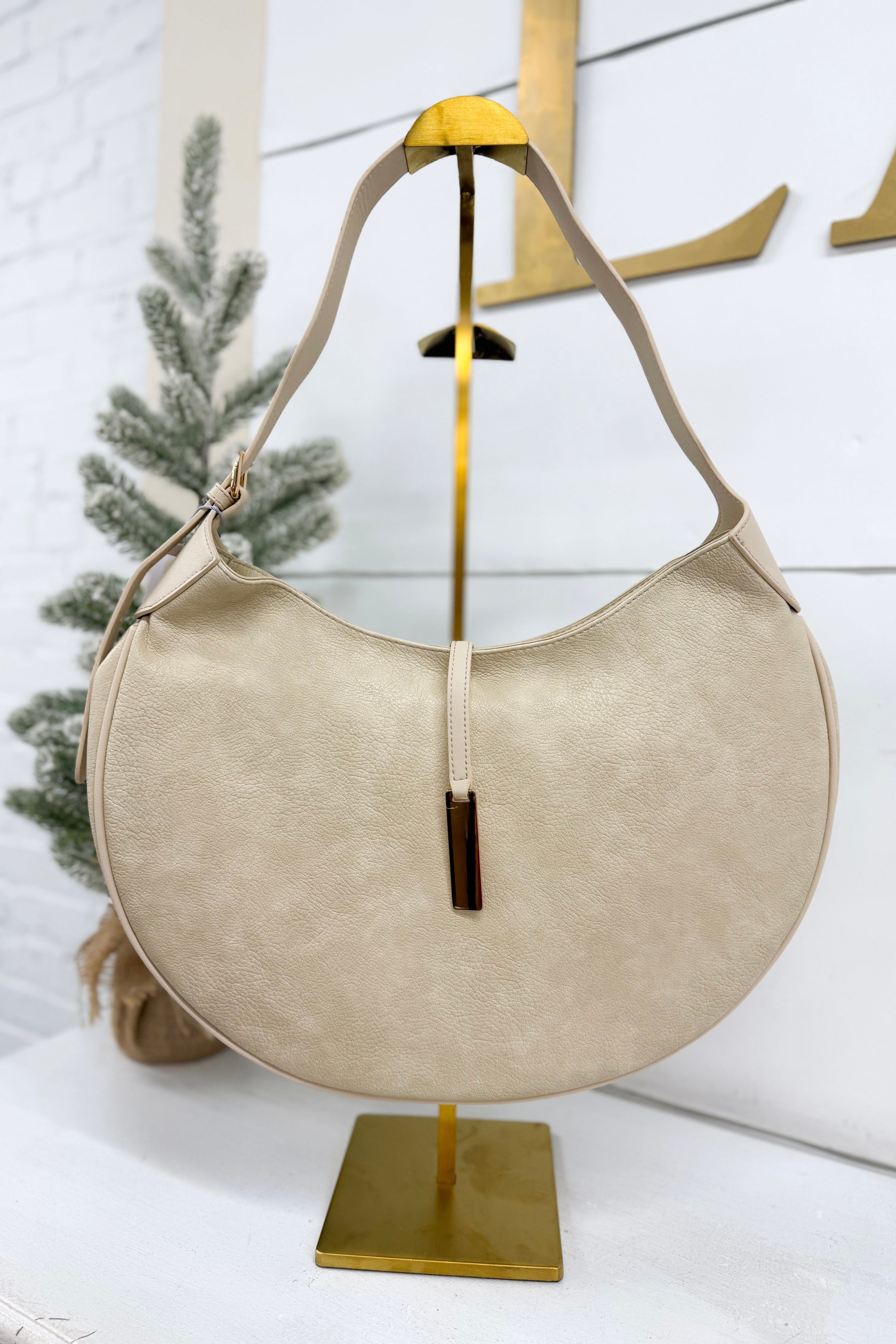 Vegan leather, Top zip closure, Adjustable strap, Gold tone hardware, Solid lining