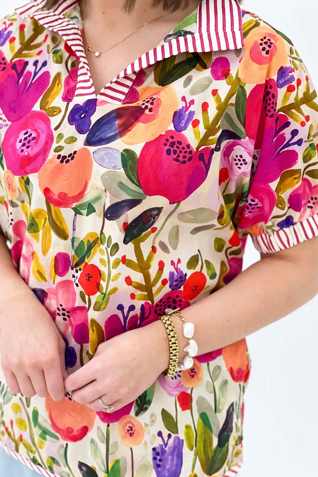 Fuchsia Mix Floral Mock Neck Top