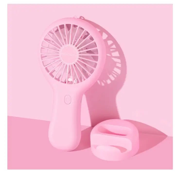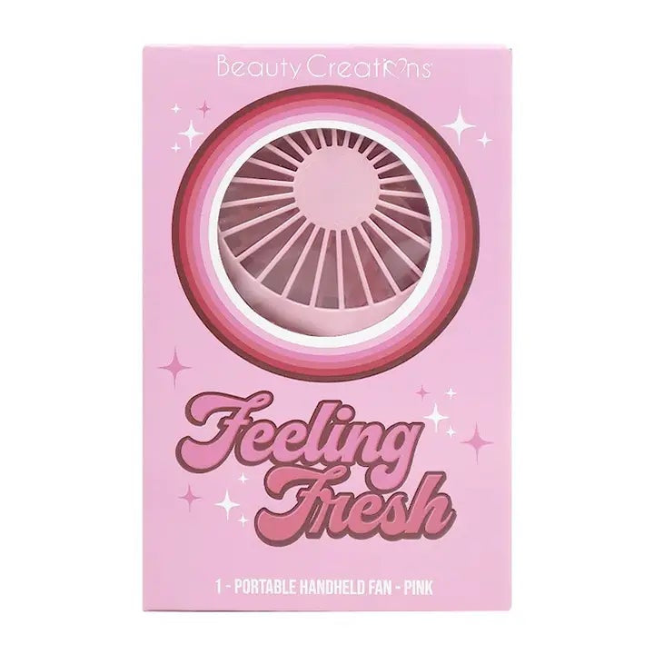 Beauty Creations Pink Feeling Fresh Portable Handheld Fan. A compact, lightweight fan designed for both everyday cooling and beauty routines. Features three adjustable speeds, making it ideal for drying makeup, setting spray, or eyelash glue with precision and ease. The sleek, handheld design ensures portability for travel, touch-ups on the go, or professional use. Includes a fan stand for hands-free operation and a USB charging cable for convenient recharging. Dimensions: 6.6 in × 3.4 in × 1 in. 6 pcs in pack.