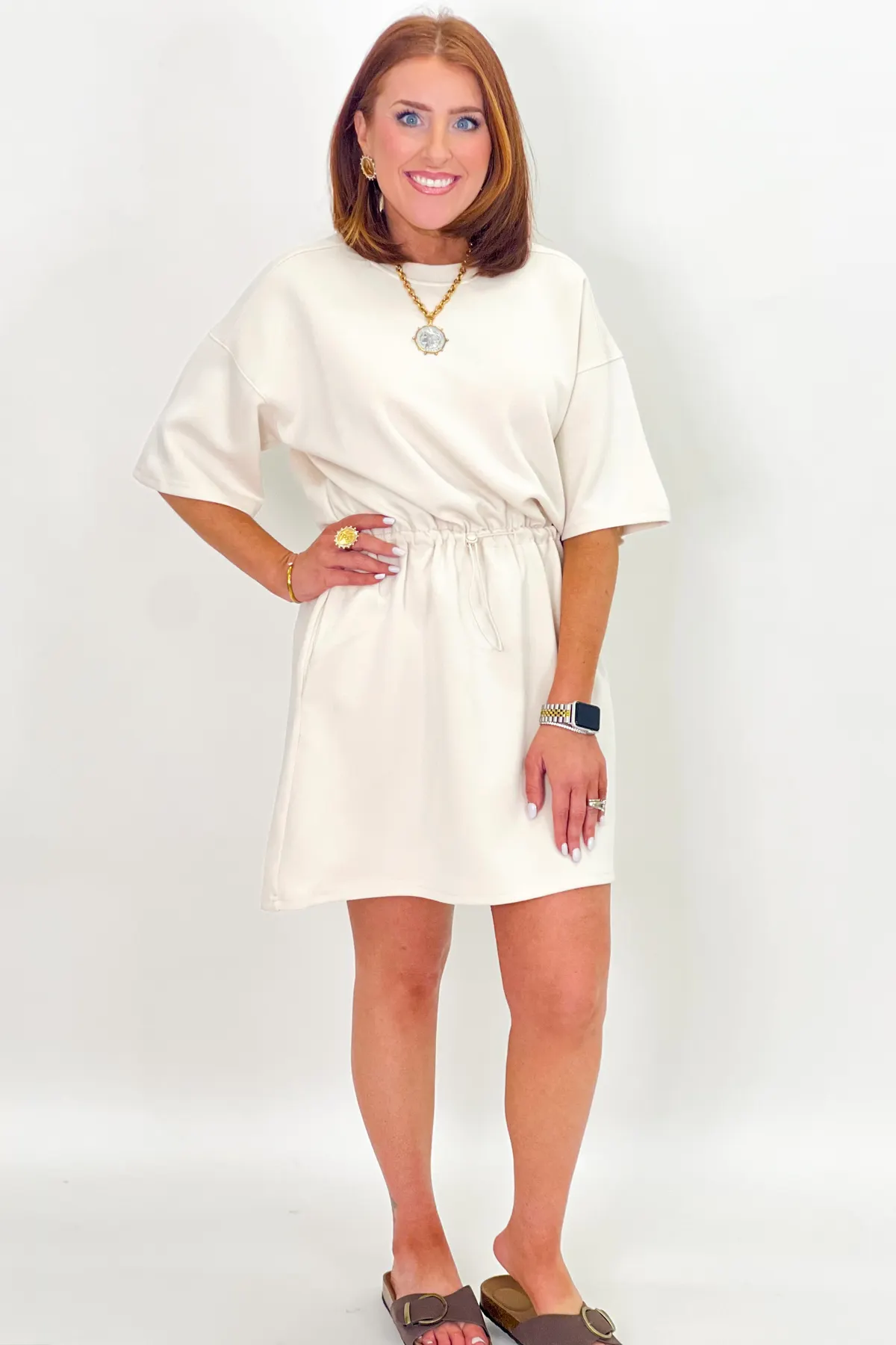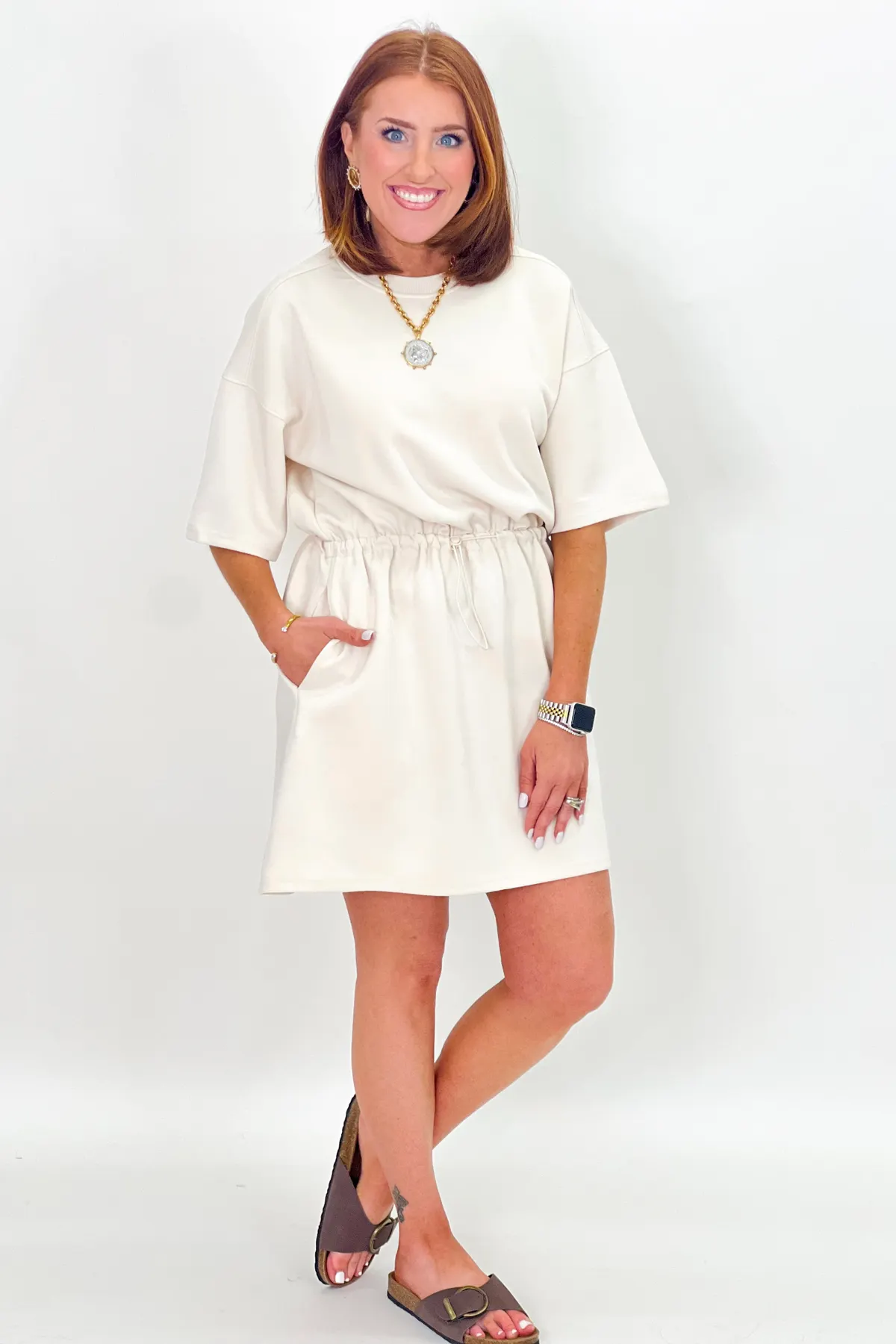 Bone Scuba Drawstring Dress