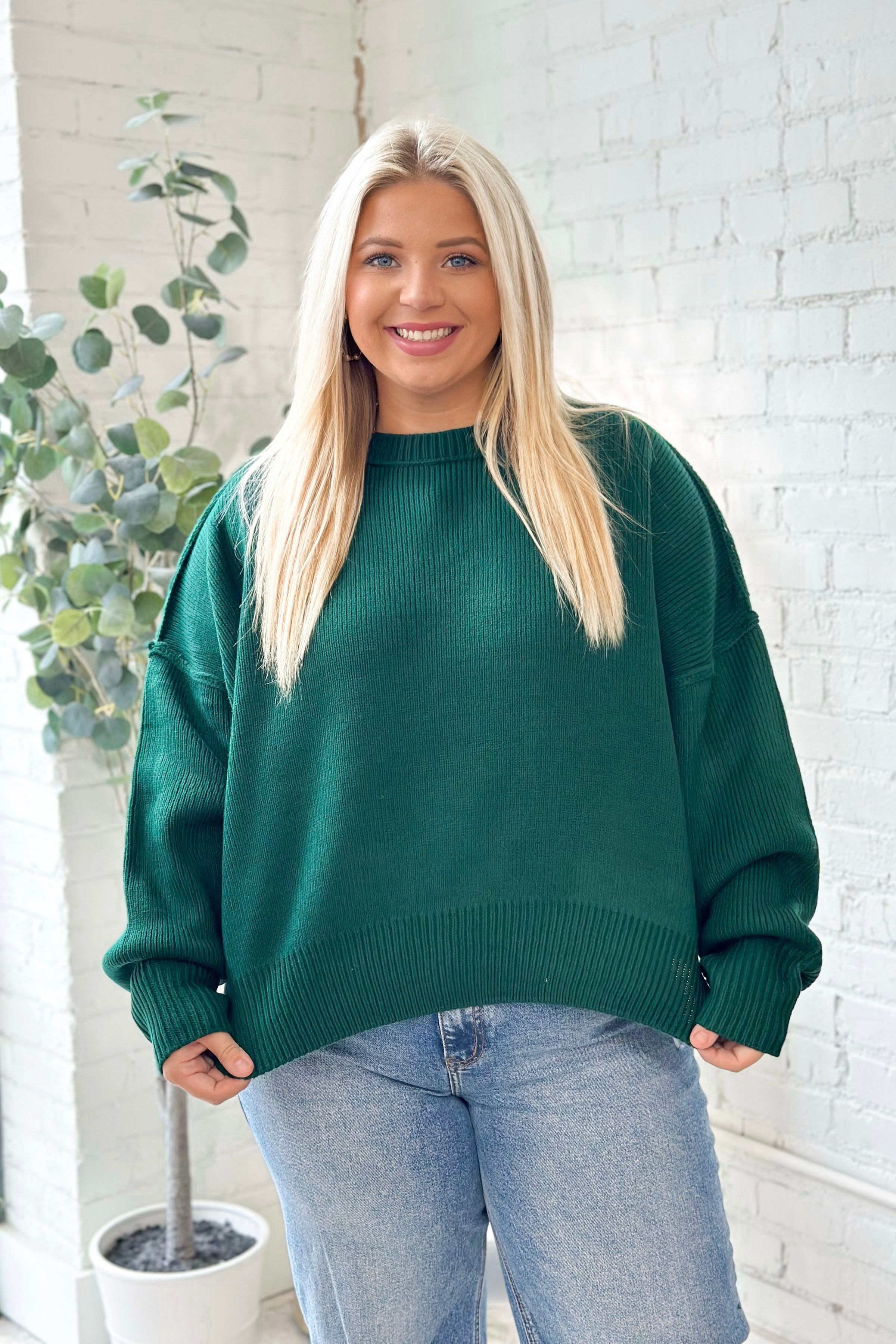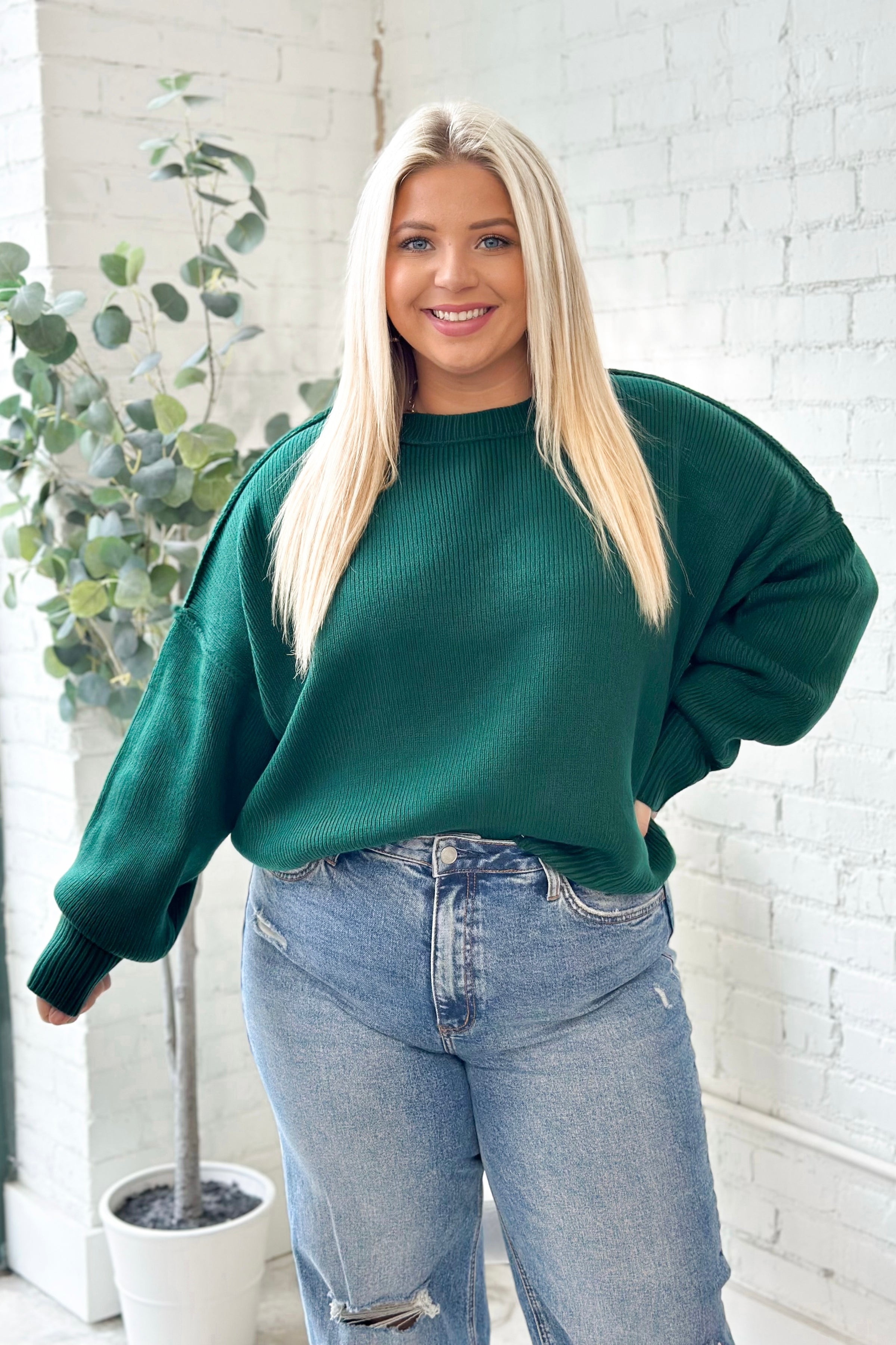 Mallory is 5'5 wearing a size large. Fits roomy.
