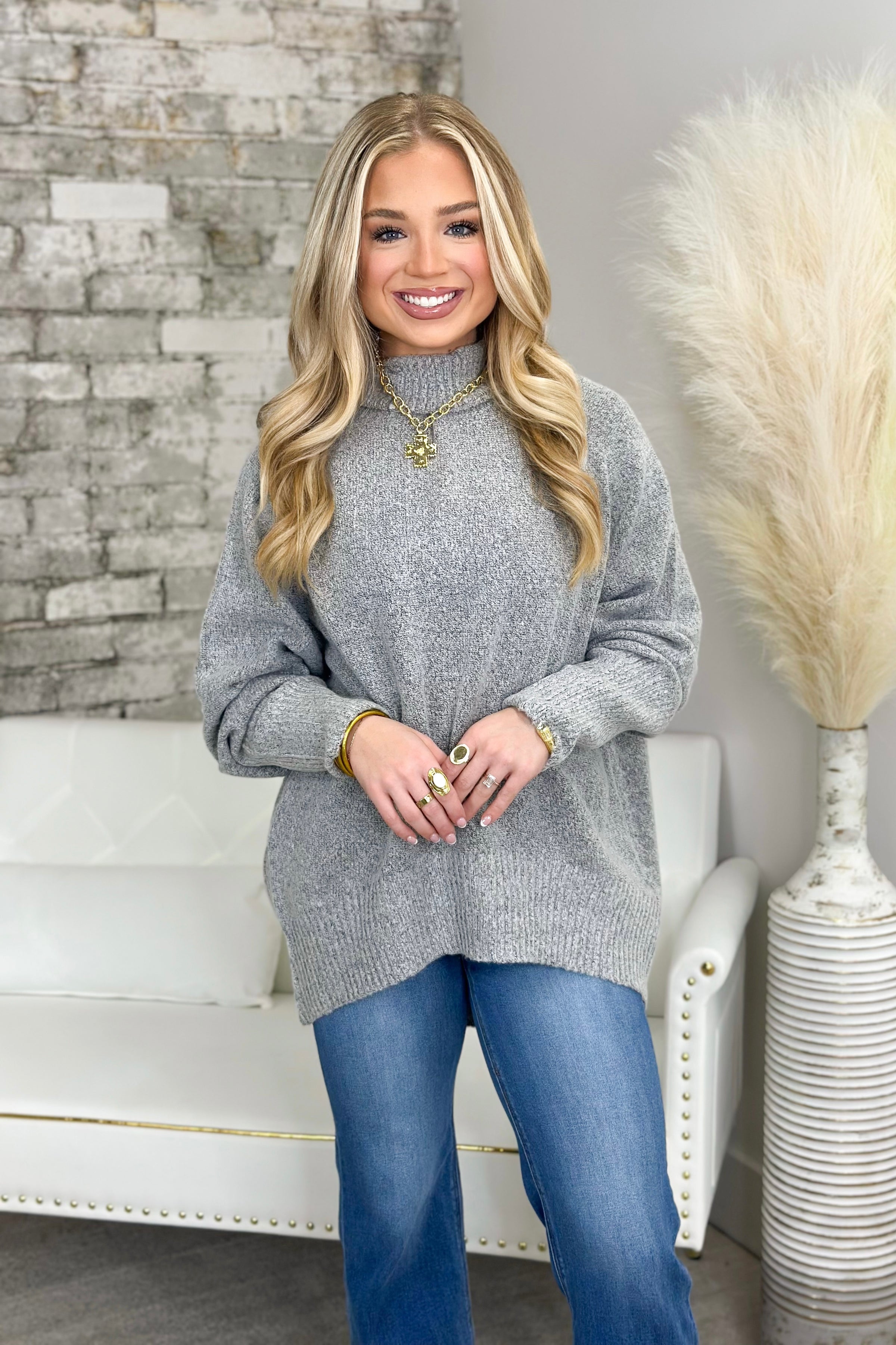 Heather Gray Turtleneck Long Sleeve Knit Sweater