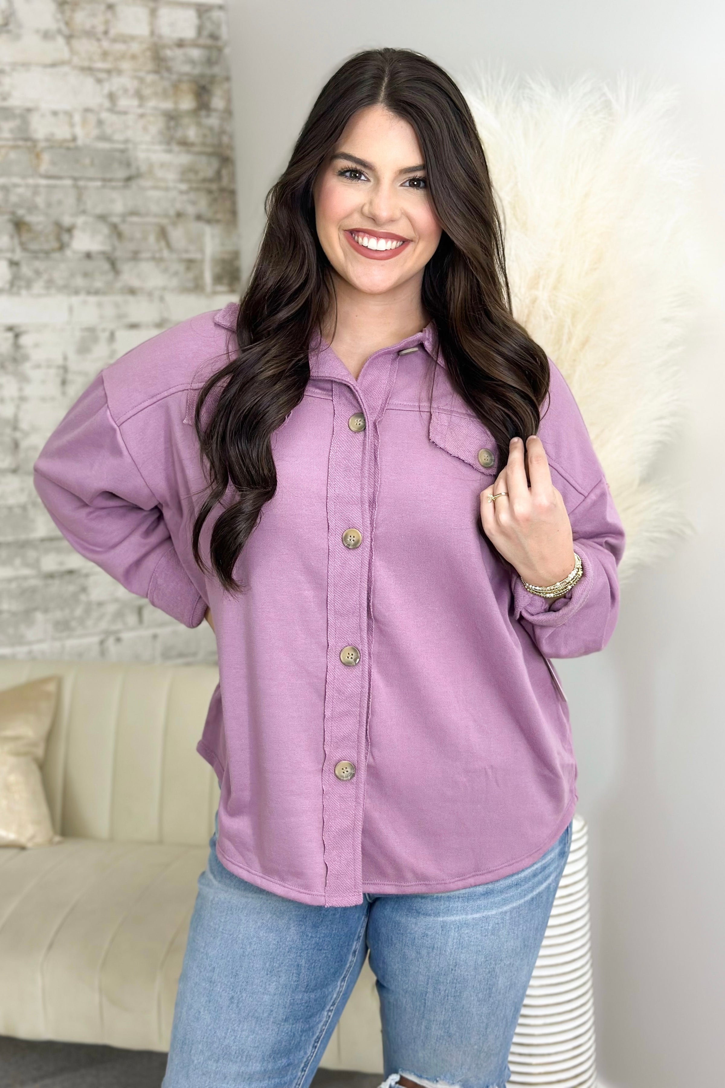 Dusty Purple Button Up Front Pocket Shacket