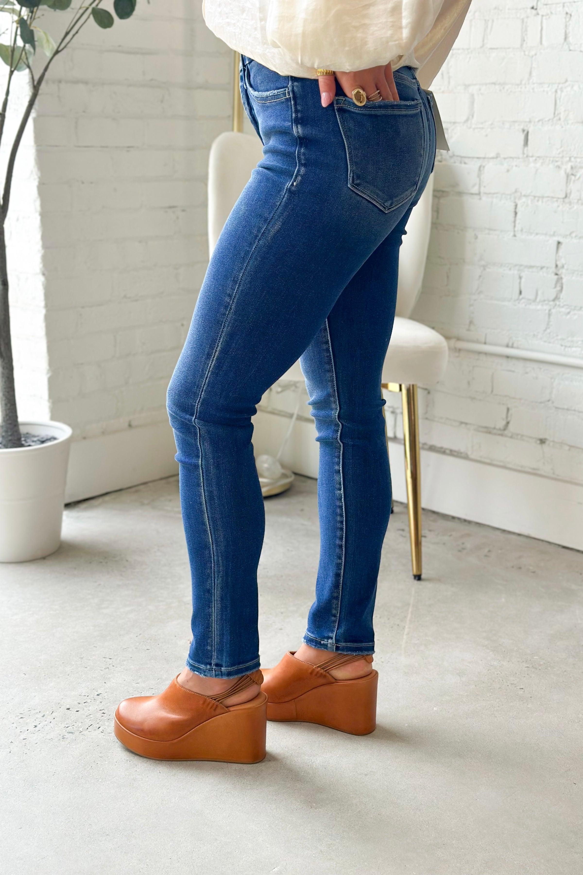 Tummy control high rise seamless waistband skinny jeans