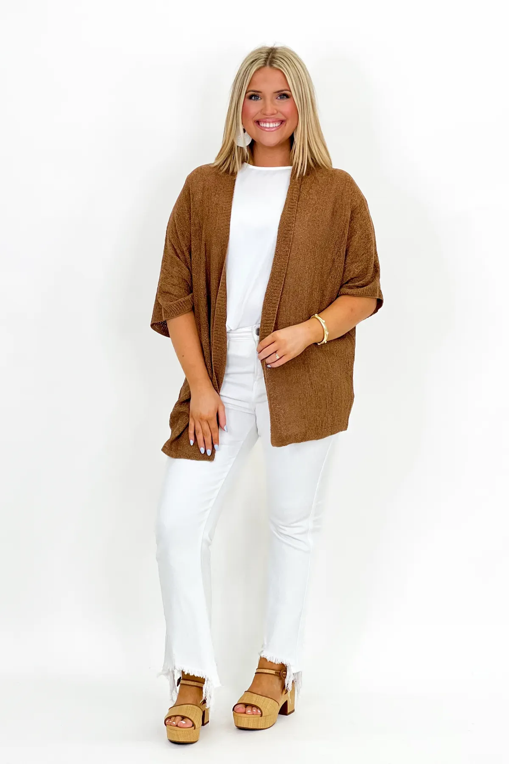 Beige and Brown Long Sleeve Cardigan