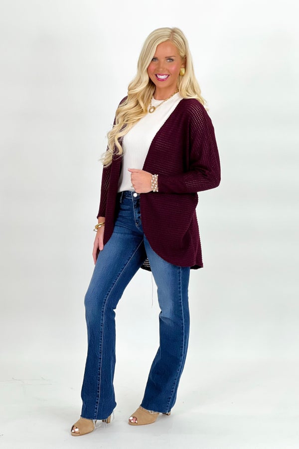Burgundy Waffle Knit Cardigan