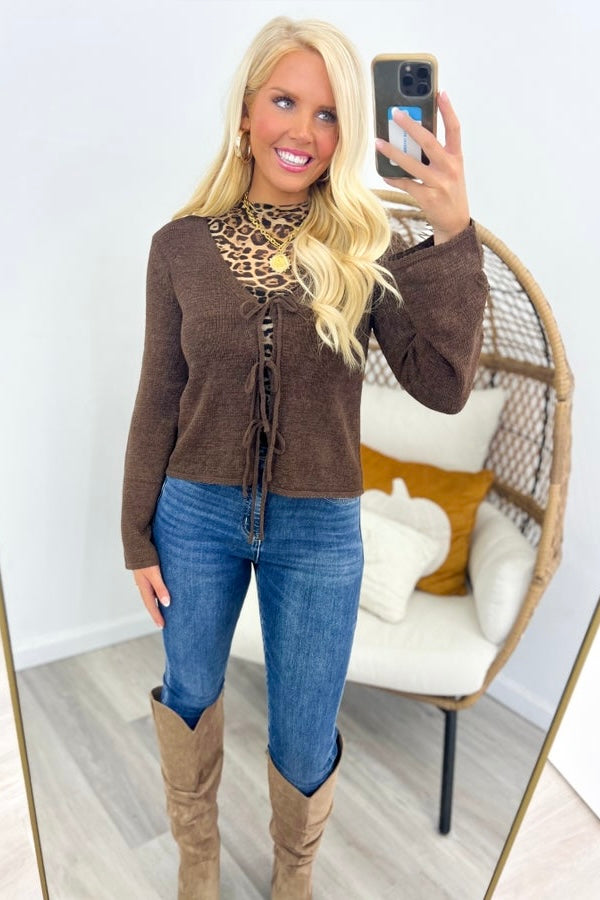 Brown Multi Tie Knit Cardigan