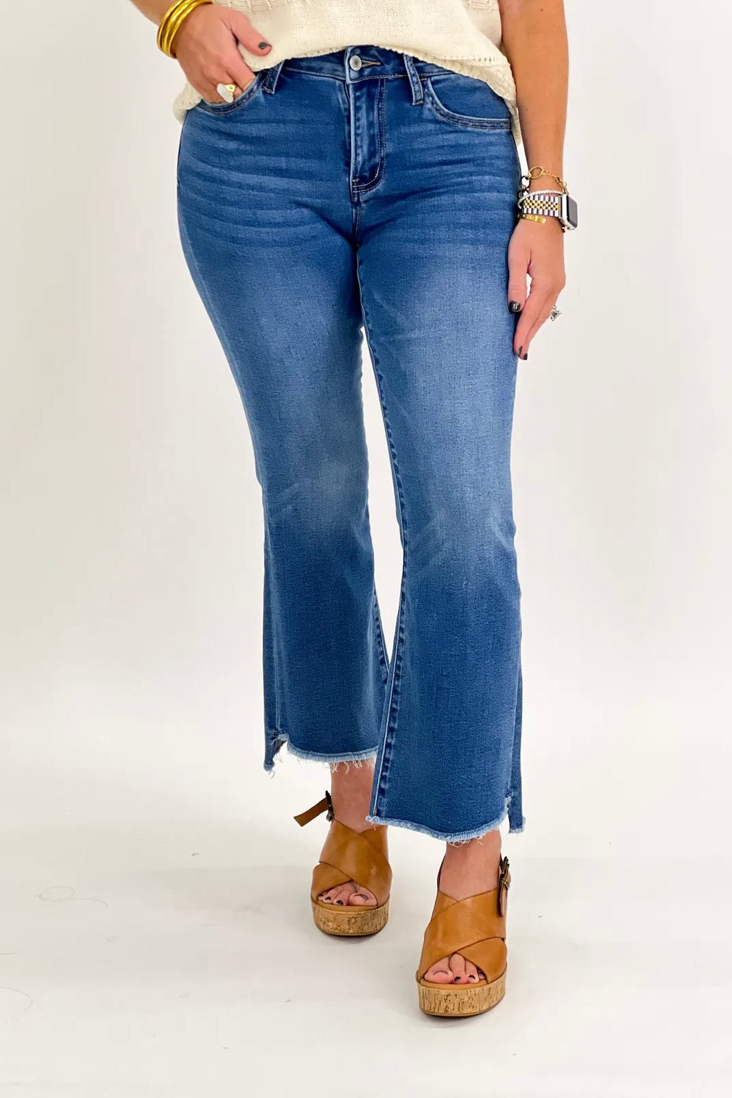 Marine Mid Rise Crop Flare Jean