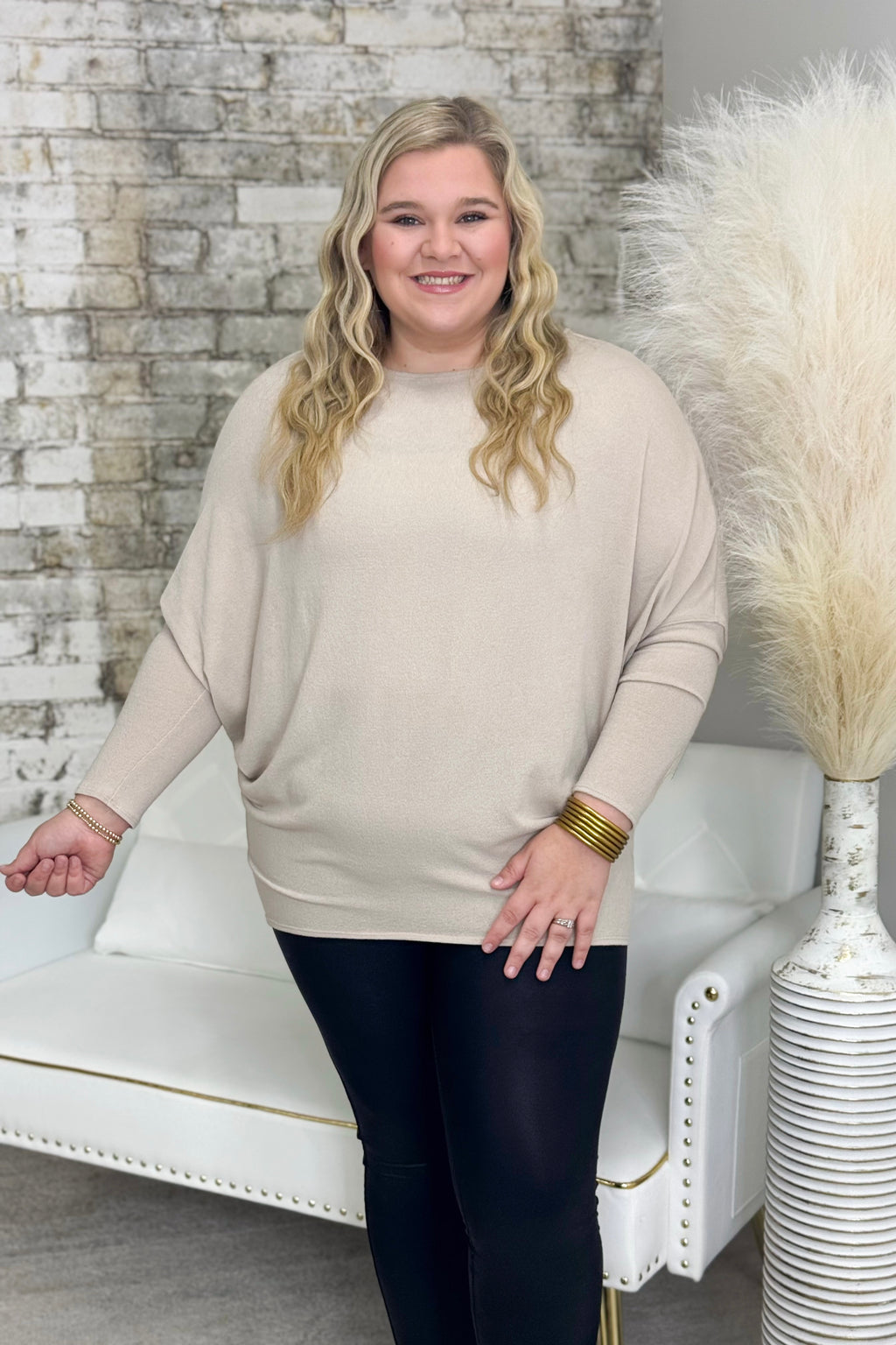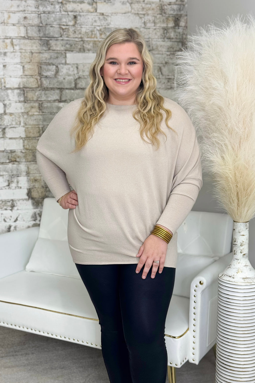 Taupe Off The Shoulder Dolman Tunic