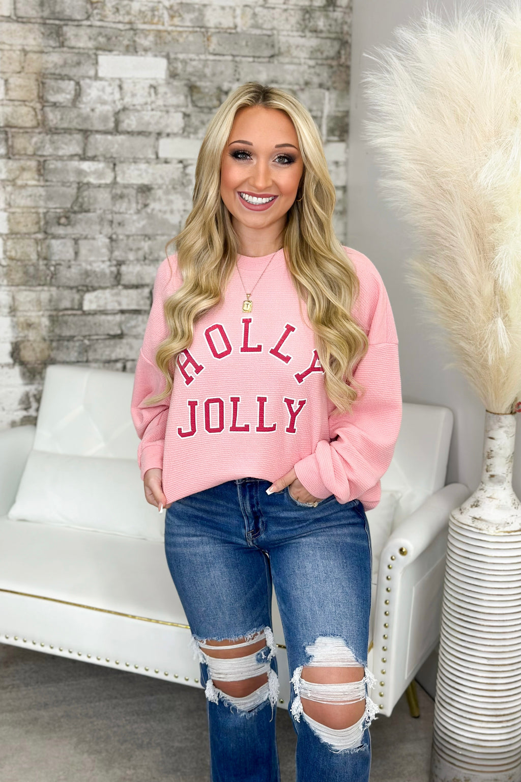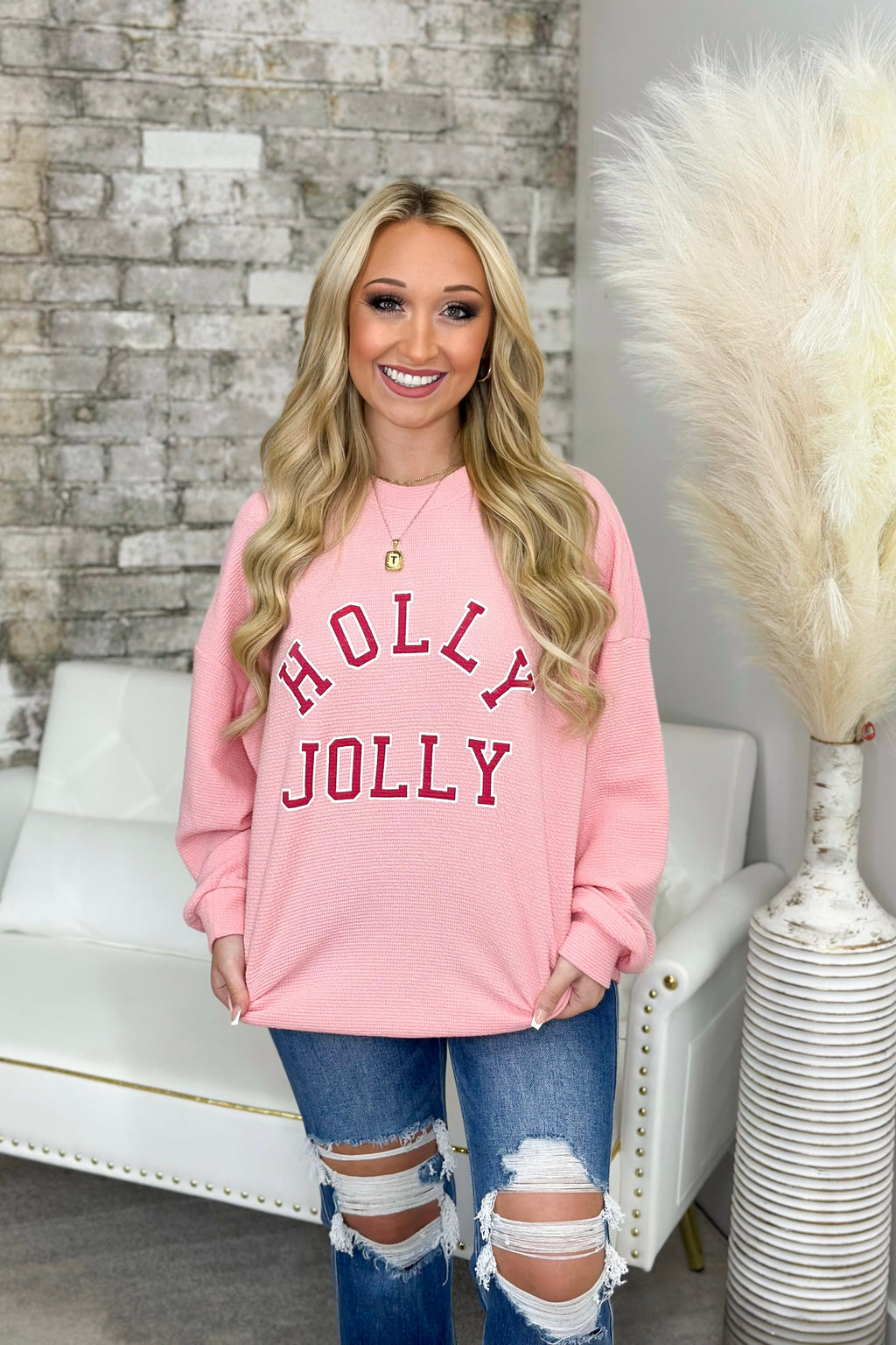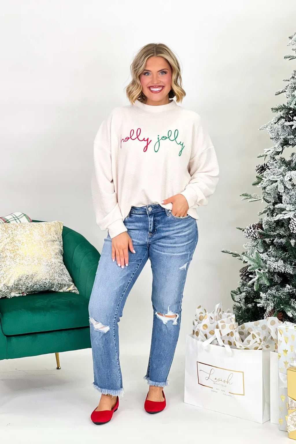 Cloudy Knit Holly Jolly Graphic Sweatshirt