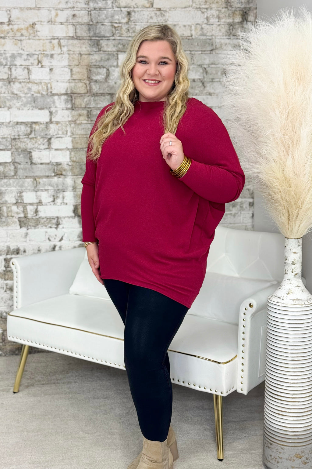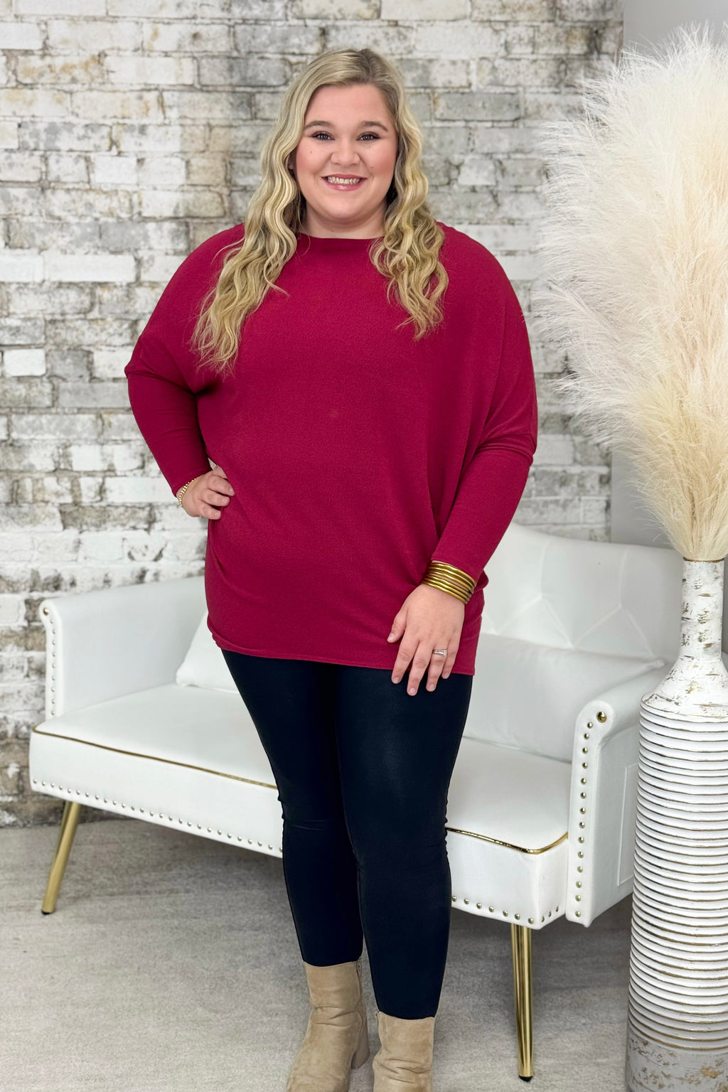 Wine Off The Shoulder Dolman Tunic