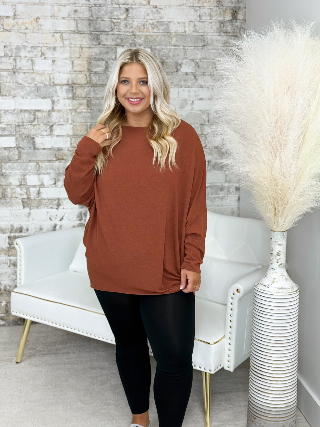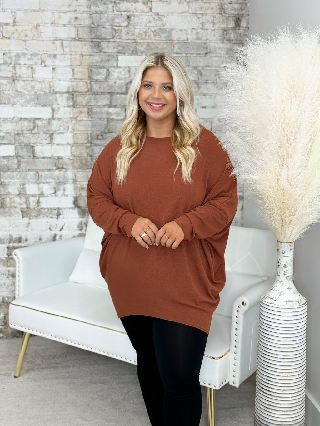 Cognac Off The Shoulder Dolman Tunic