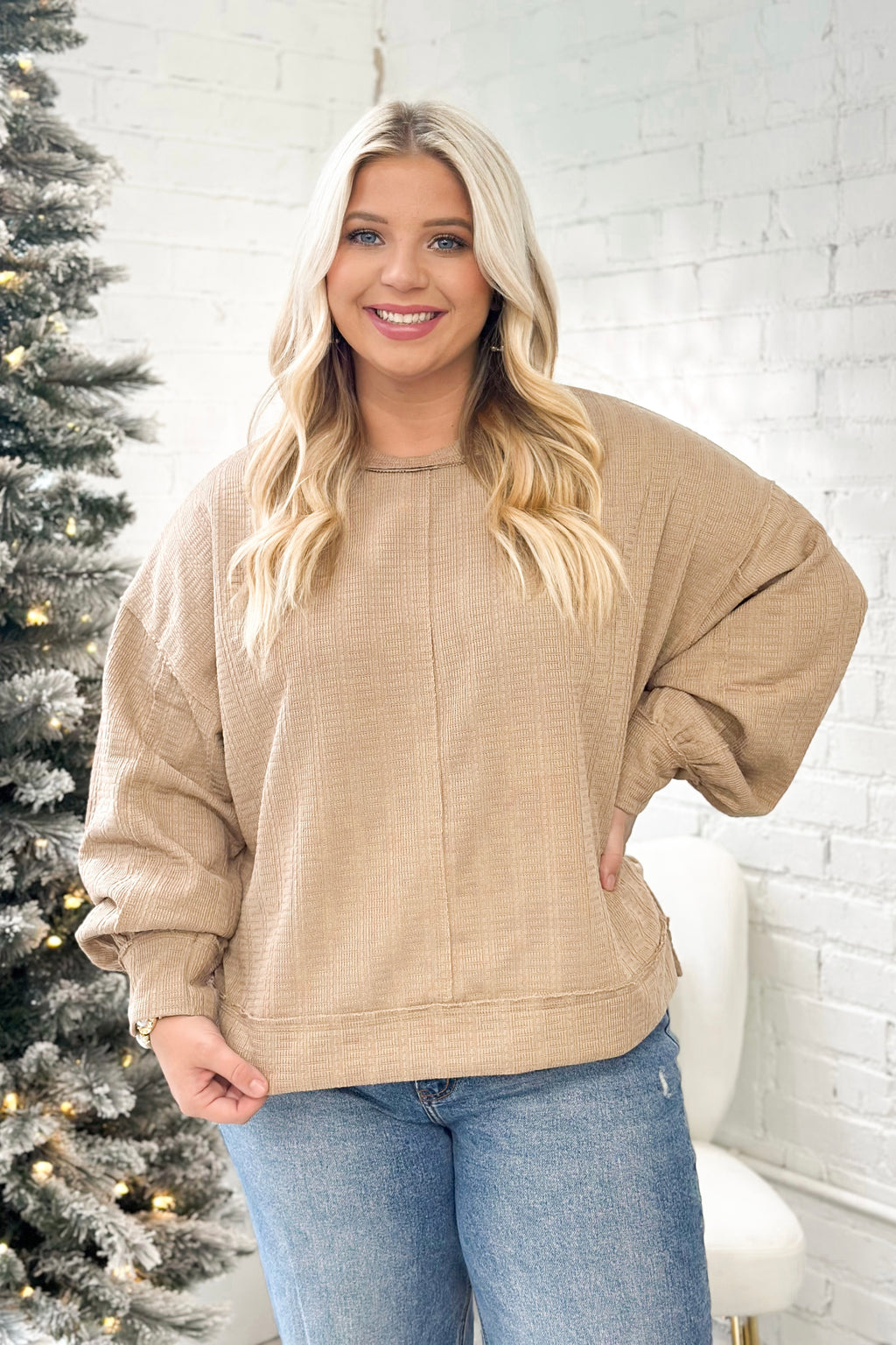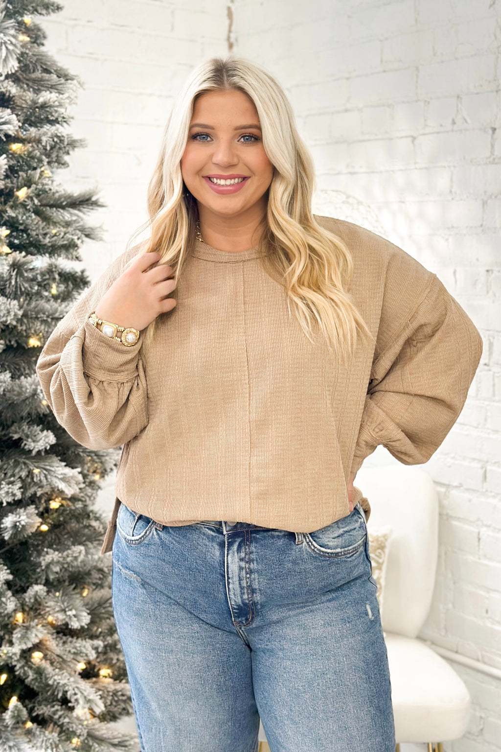 Taupe Textured Puff Sleeve Top
