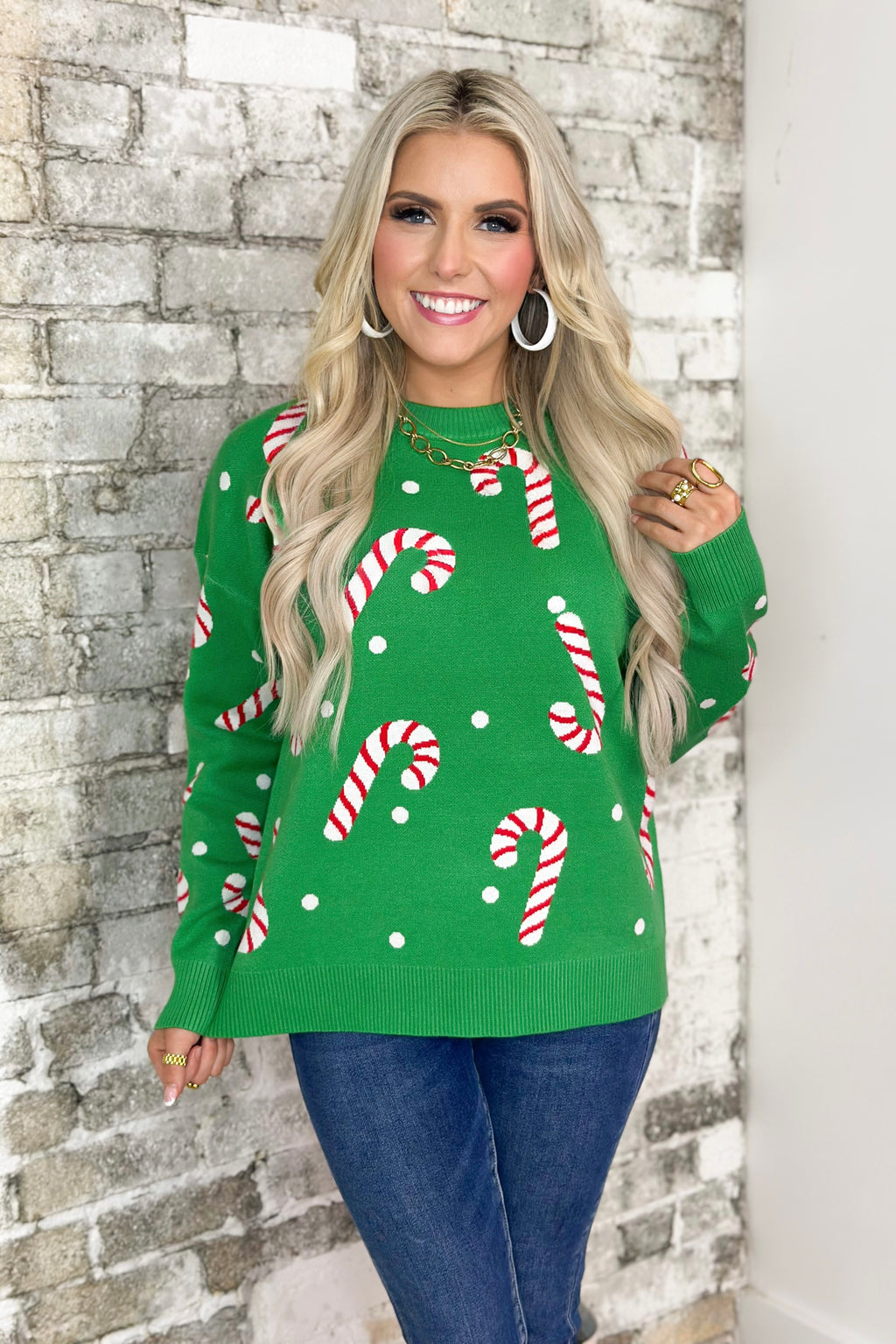 Green Candy Cane Crew Neck Sweater