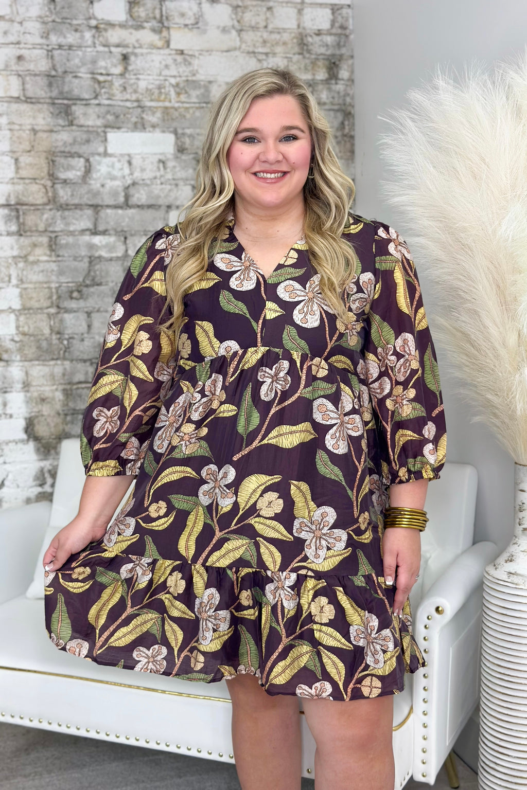 Brown Mix Floral Ruffle Mini Dress
