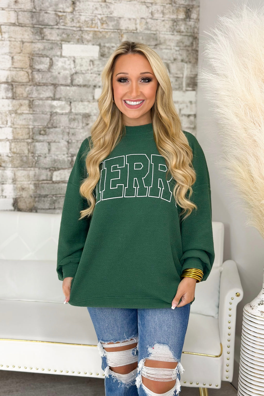 Hunter Green Merry Long Sleeve Sweatshirt