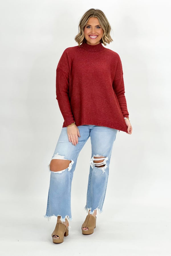 Brick Mock Neck Long Sleeve Sweater