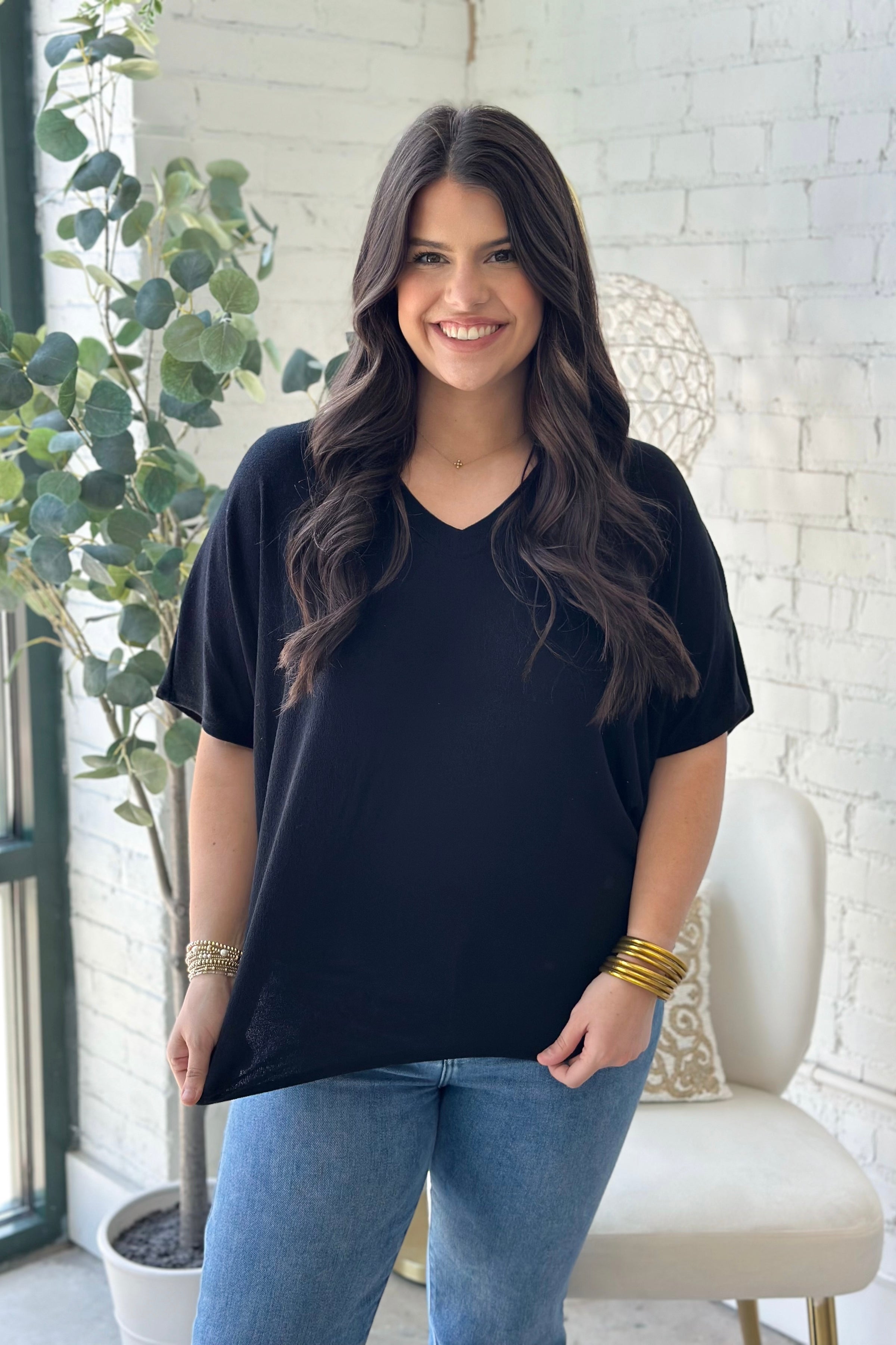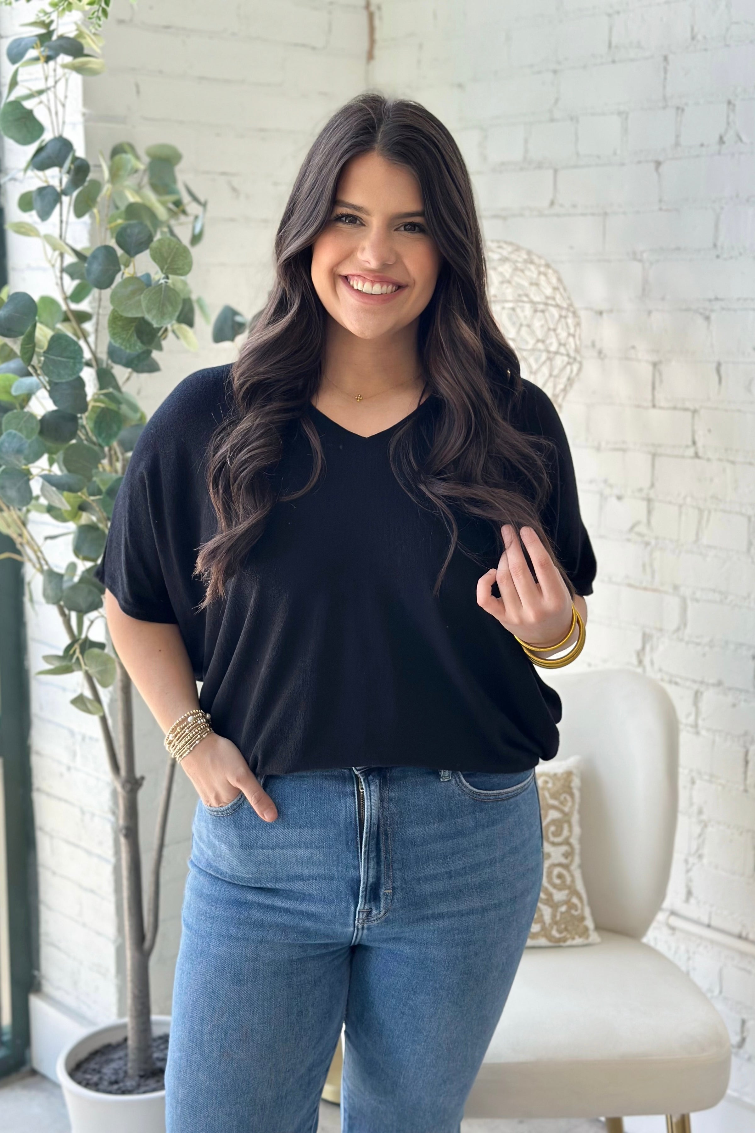 Black Short Sleeve V-Neck Cacoon Top *FINAL SALE*