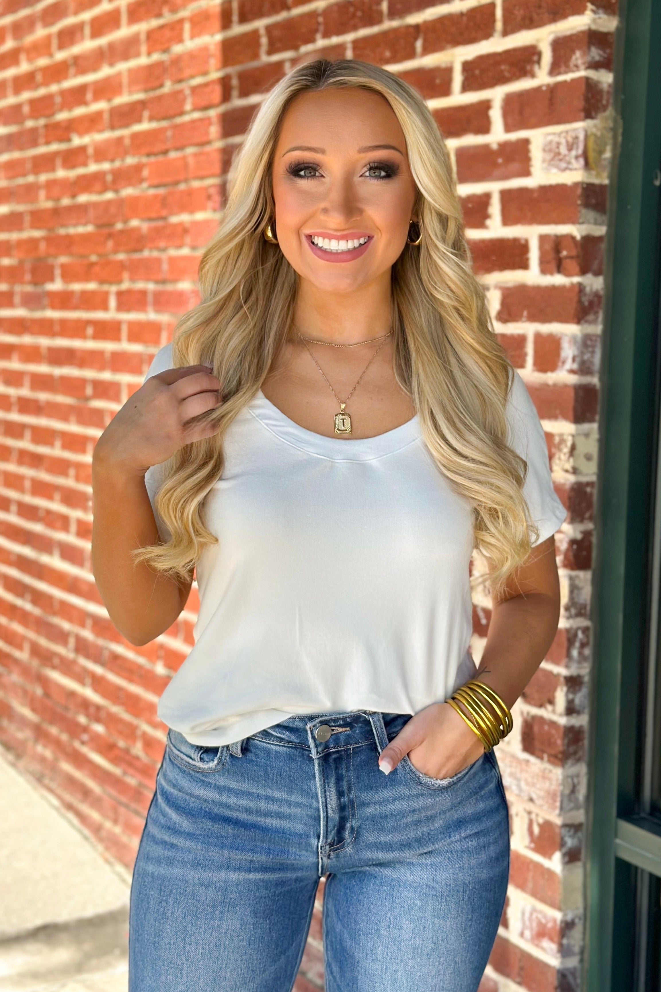 White Round Neck Short Sleeve Top
