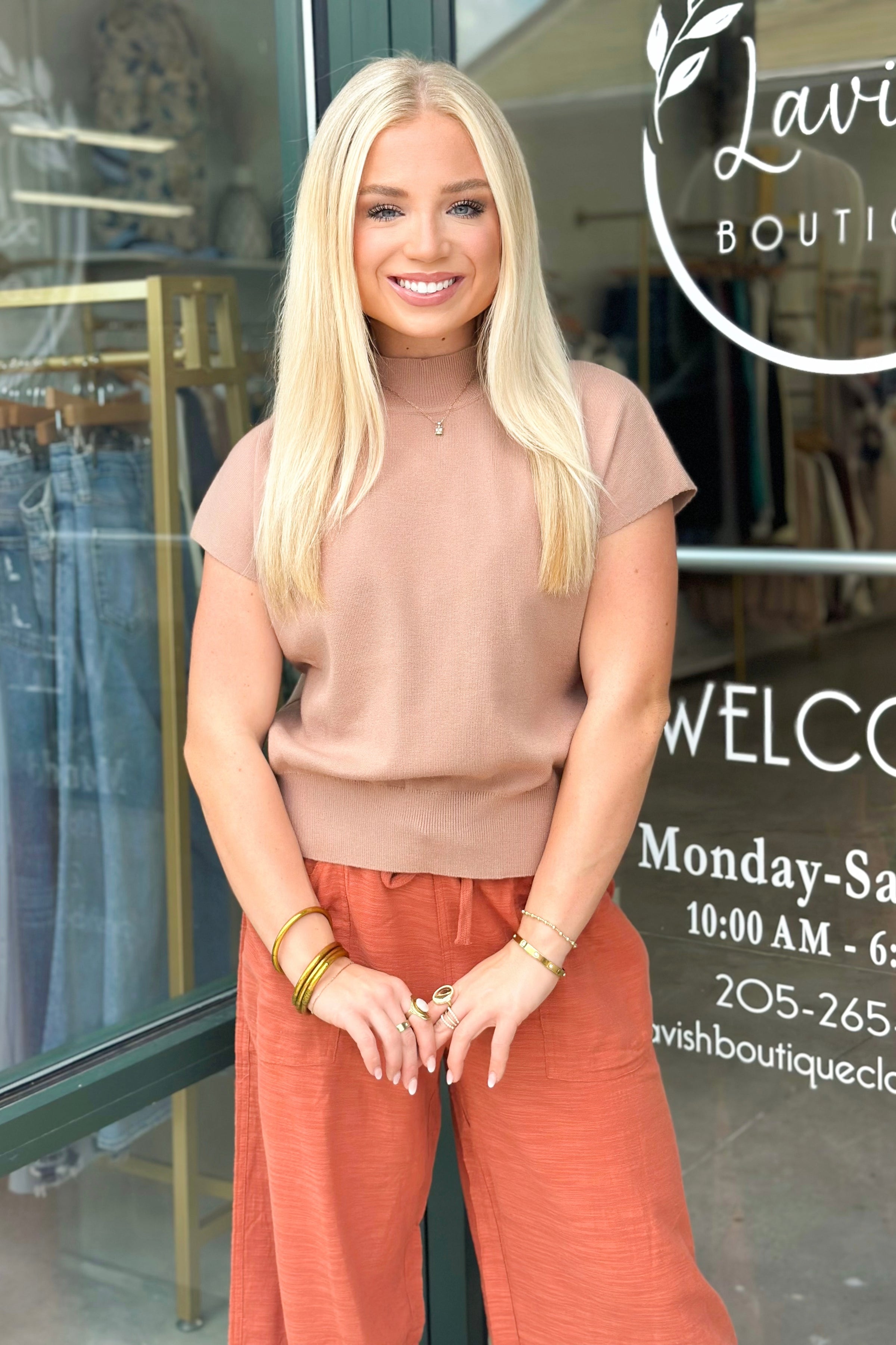 Mocha Cap Sleeve High Neck Top *FINAL SALE*