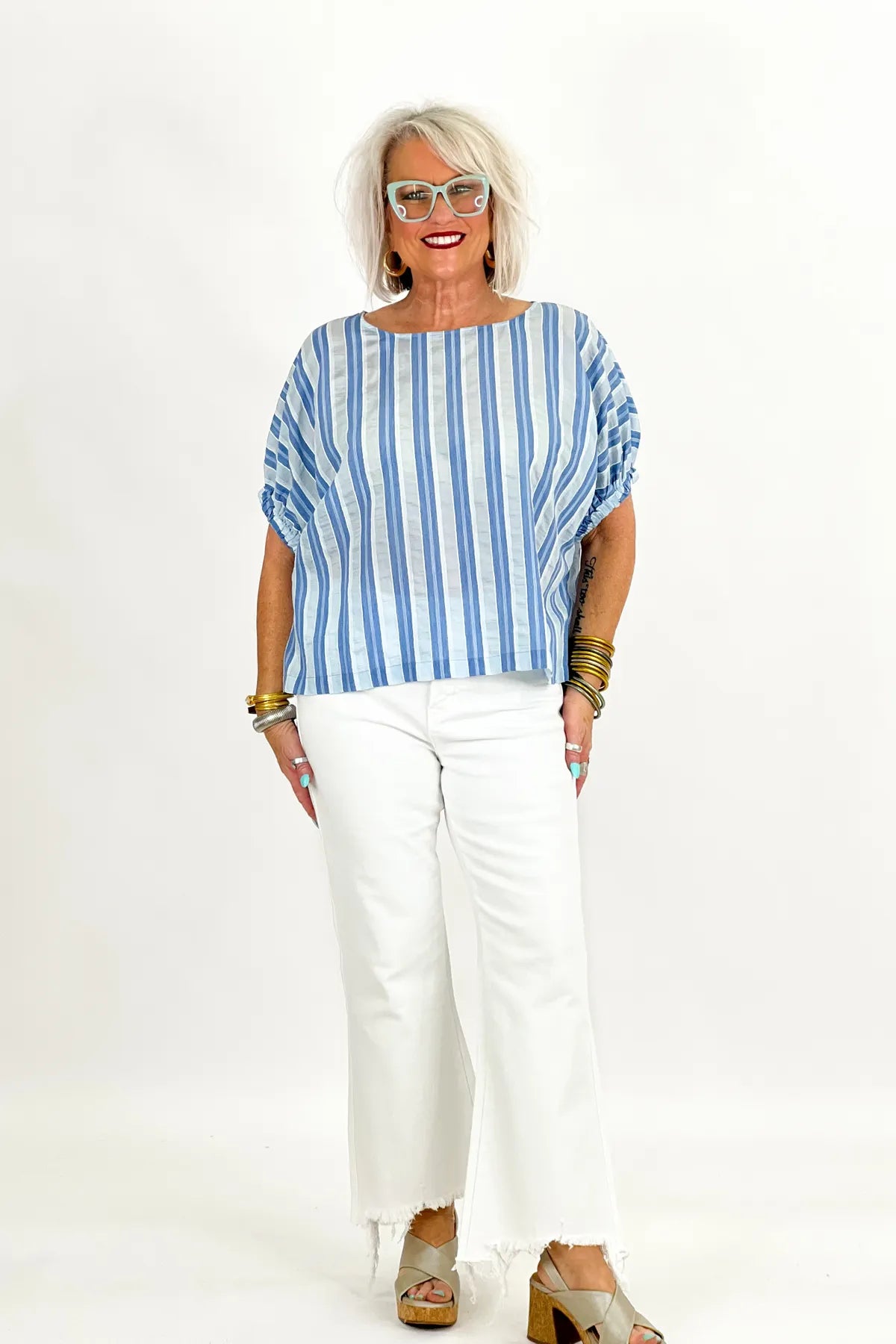 Bust: OversizedLength: 23inMaterial: 30% Tencel/30% Polyester/20% Nylon/10% Rayon