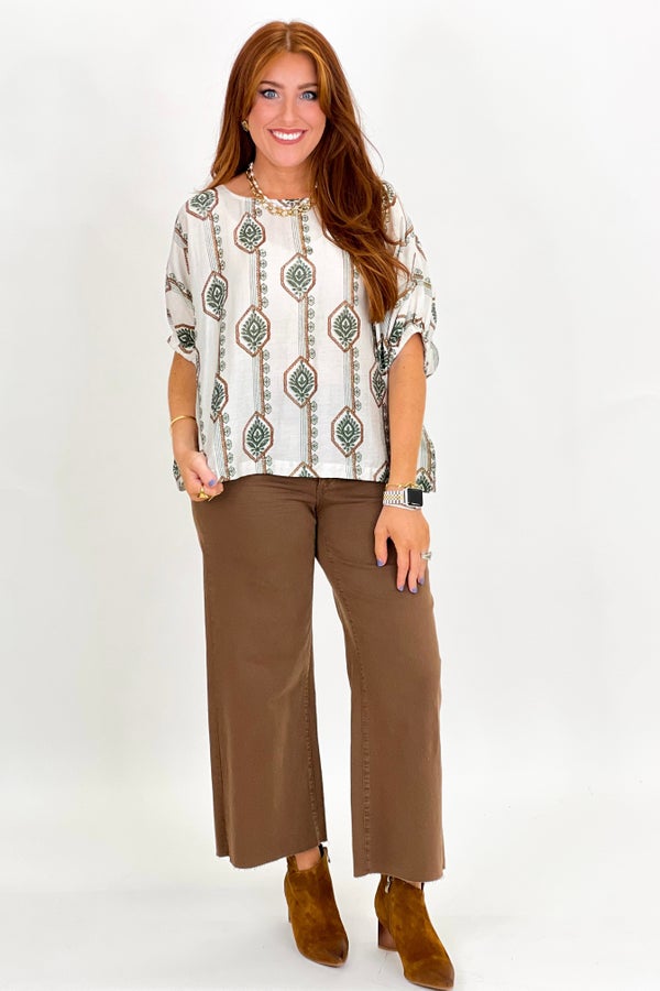 Olive Garden Geometric Flower Boat Neck Top *FINAL SALE*