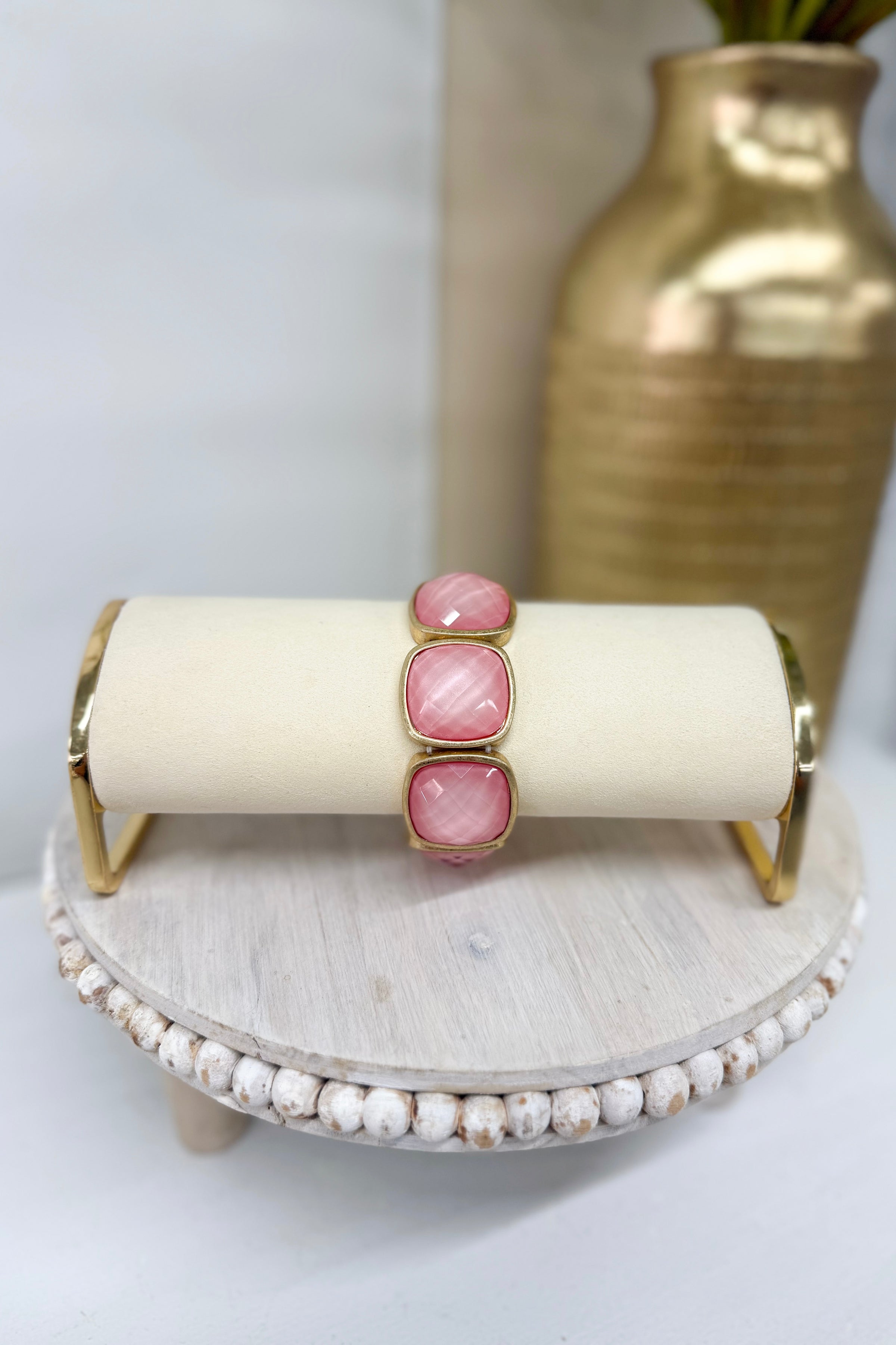 Pink and Gold Square Stone Statement Bracelet