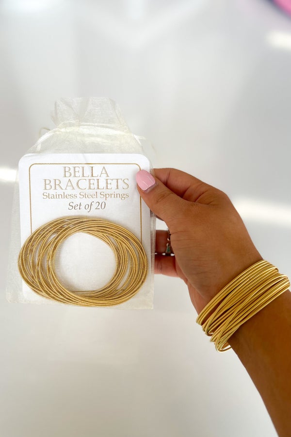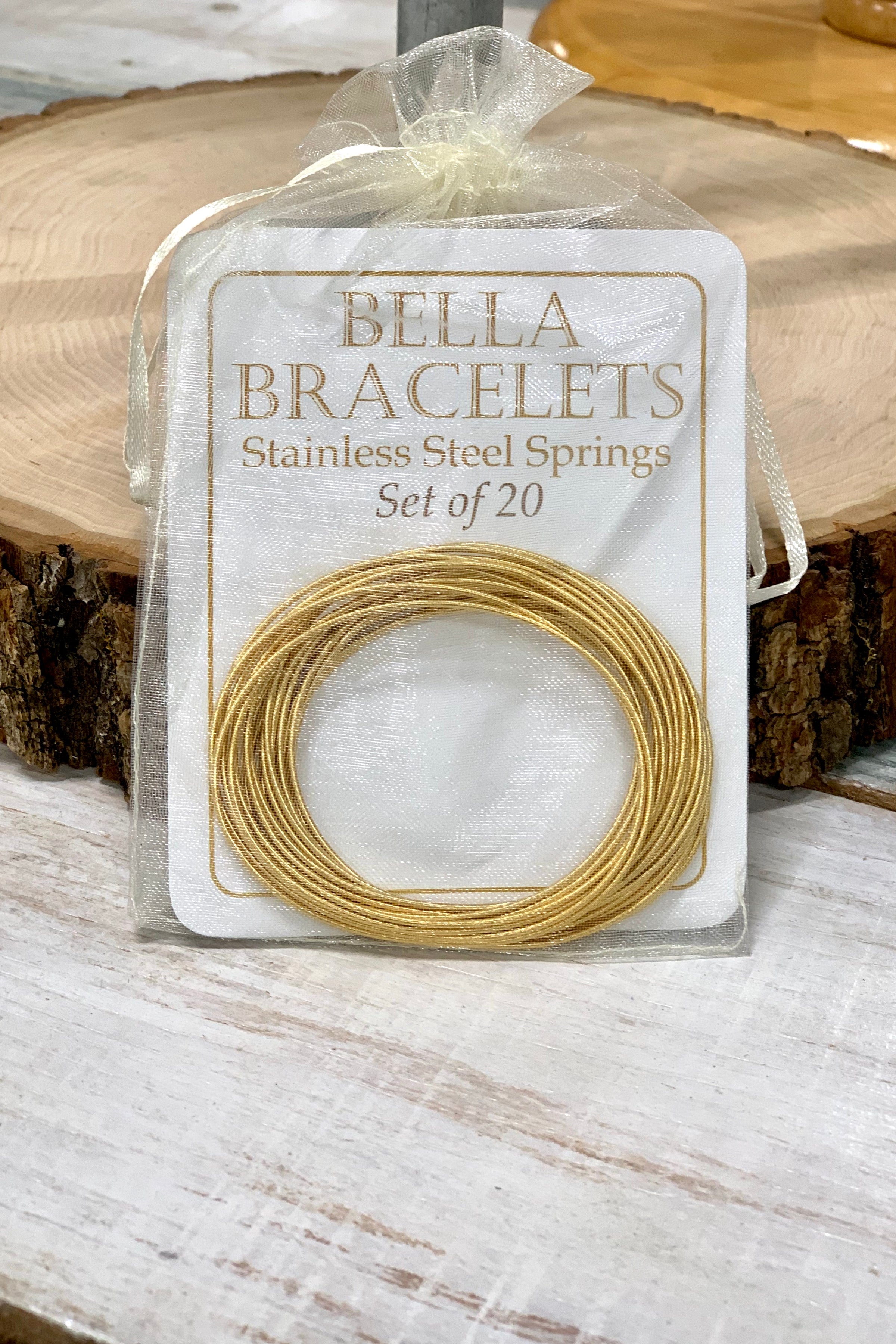 Bella bracelets are made of gold plated stainless steel. They will not tarnish or rust. These bracelets can be worn 24/7 at work or play. (Although they do not rust water can affect the color or them to fade over time.) VERY LIGHTWEIGHT