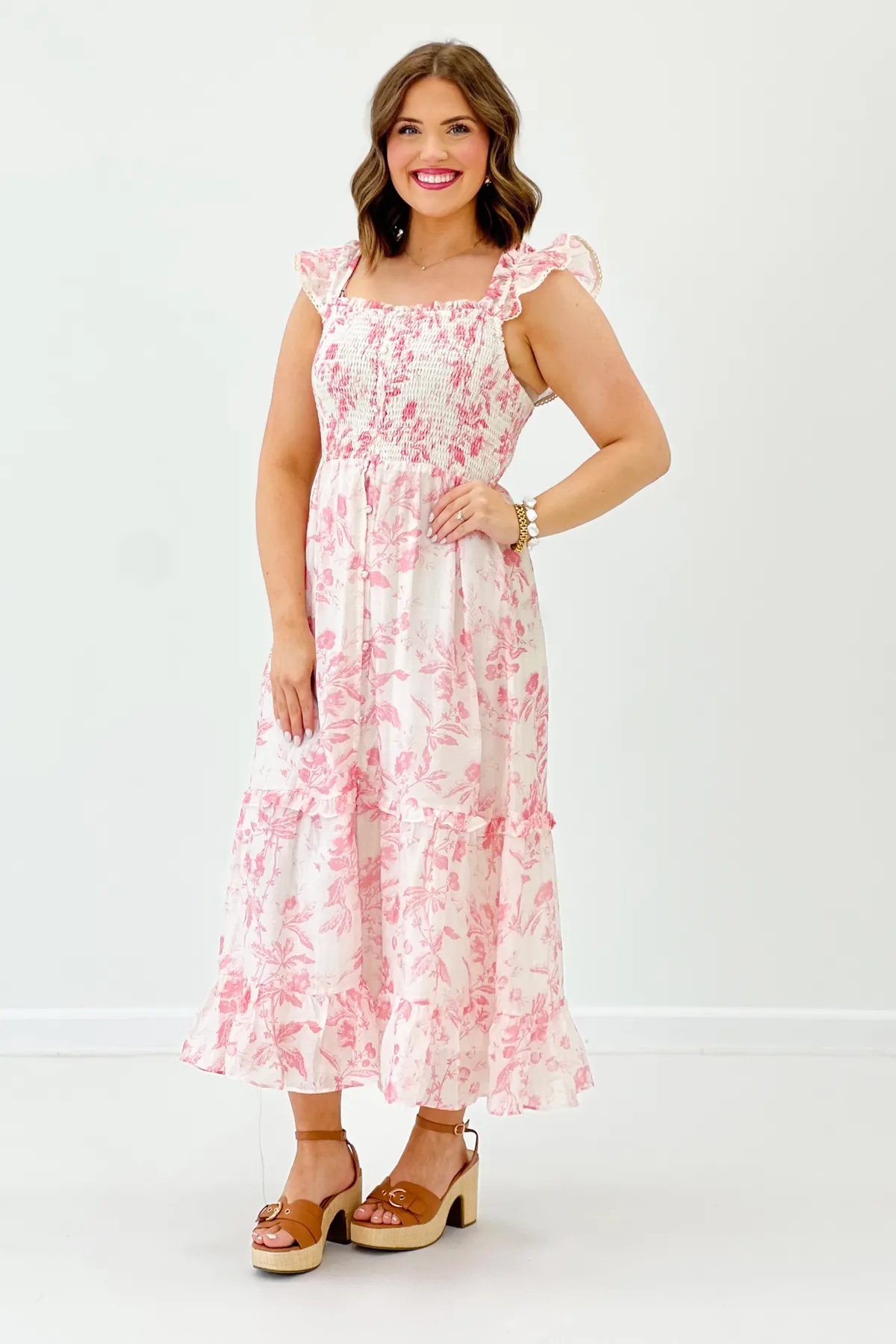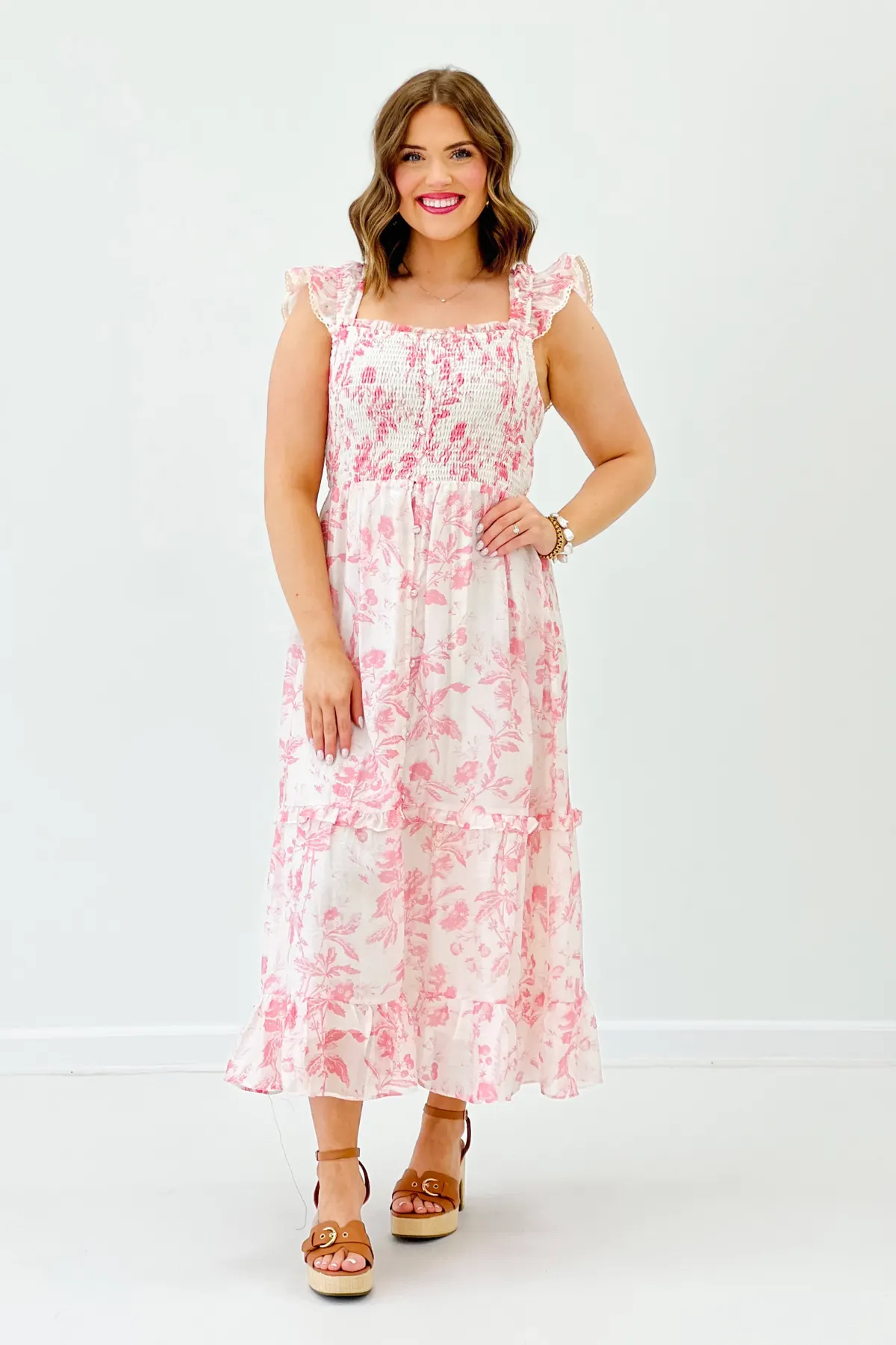 White and Pink Floral Sleeveless Maxi Dress